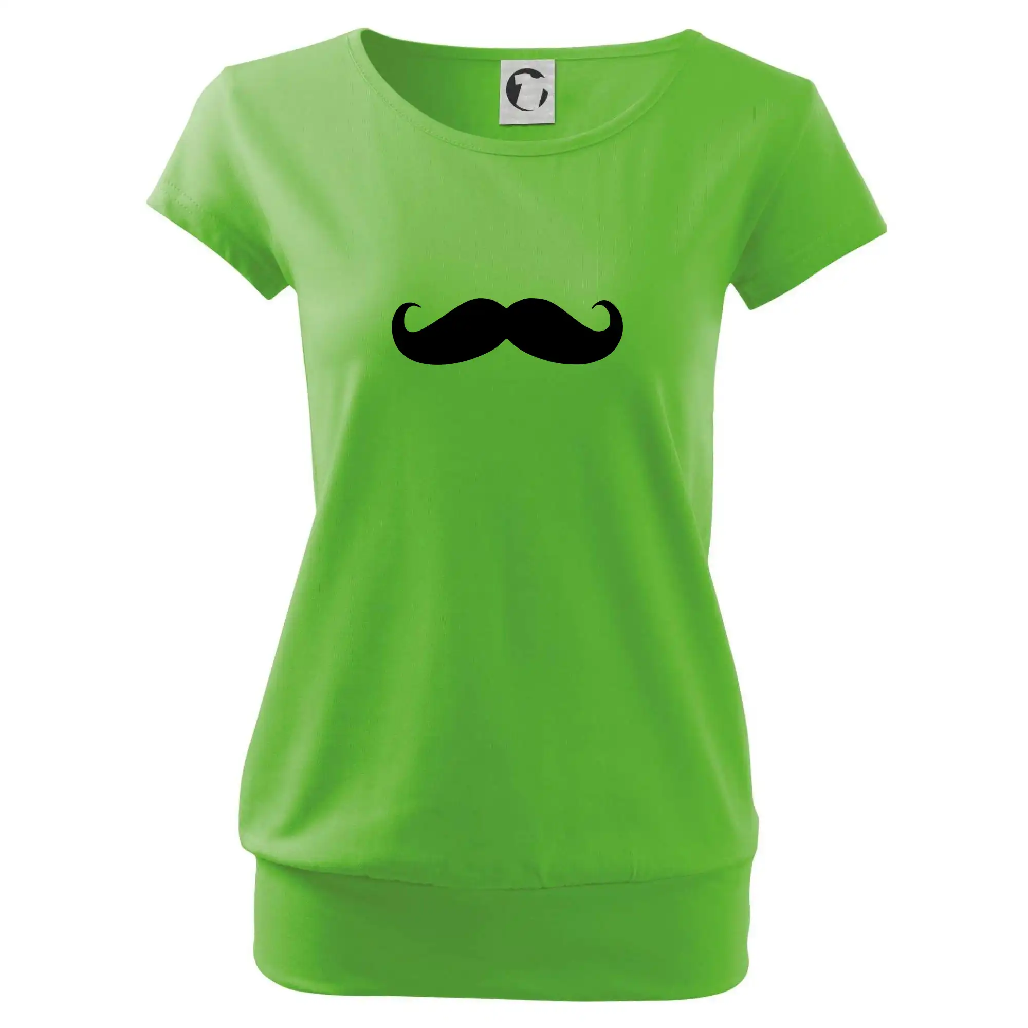 Trendové dámske tričko s veľmi krátkym rukávom, voľnejšieho strihu, v dolnom kraji všité do širokého lemu. Okrúhly priekrčník s úzkym lemom zo zhodného materiálu.