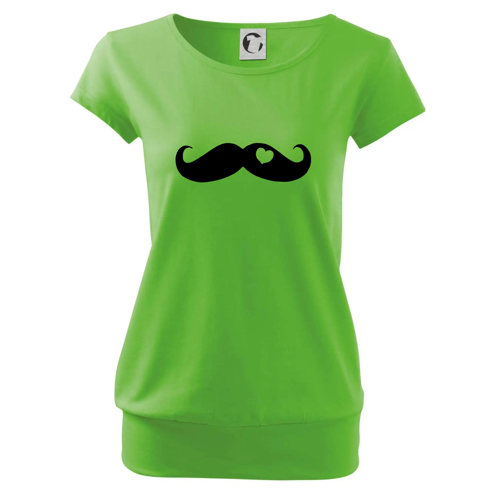 Trendové dámske tričko s veľmi krátkym rukávom, voľnejšieho strihu, v dolnom kraji všité do širokého lemu. Okrúhly priekrčník s úzkym lemom zo zhodného materiálu.
