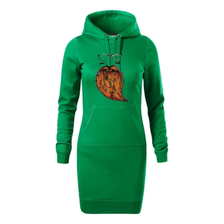 Dámske mikinové šaty MALFINI Snap 419 sú ideálnou voľbou pre ženy, ktoré hľadajú pohodlný a štýlový kúsok na voľný čas alebo každodenné nosenie. Ľahko vypasovaný strih s bočnými švami podčiarkuje ženskú siluetu, zatiaľ čo kapucňa s podšívkou a sťahovacou šnúrkou dodáva ležérny vzhľad. Šaty majú dĺžku nad kolená a sú vybavené našitým vreckom v štýle „klokanky“. Materiál je mäkký a príjemný na dotyk grâce à smesi bavlny a polyesteru s nepočesanou vnútornou stranou.