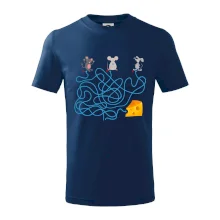 Tričko myšací hlavolam je pre Teba to pravé, ak si milovník hlavolamov a hádaniek alebo ak máš rád myši. Tri myši, jeden syr, jedno bludisko, ktorá myška nájde cestu bludiskom ako prvá? Ja si myslím, že vyhraje biely myš. Tričko je vhodný darček pre dieťa.