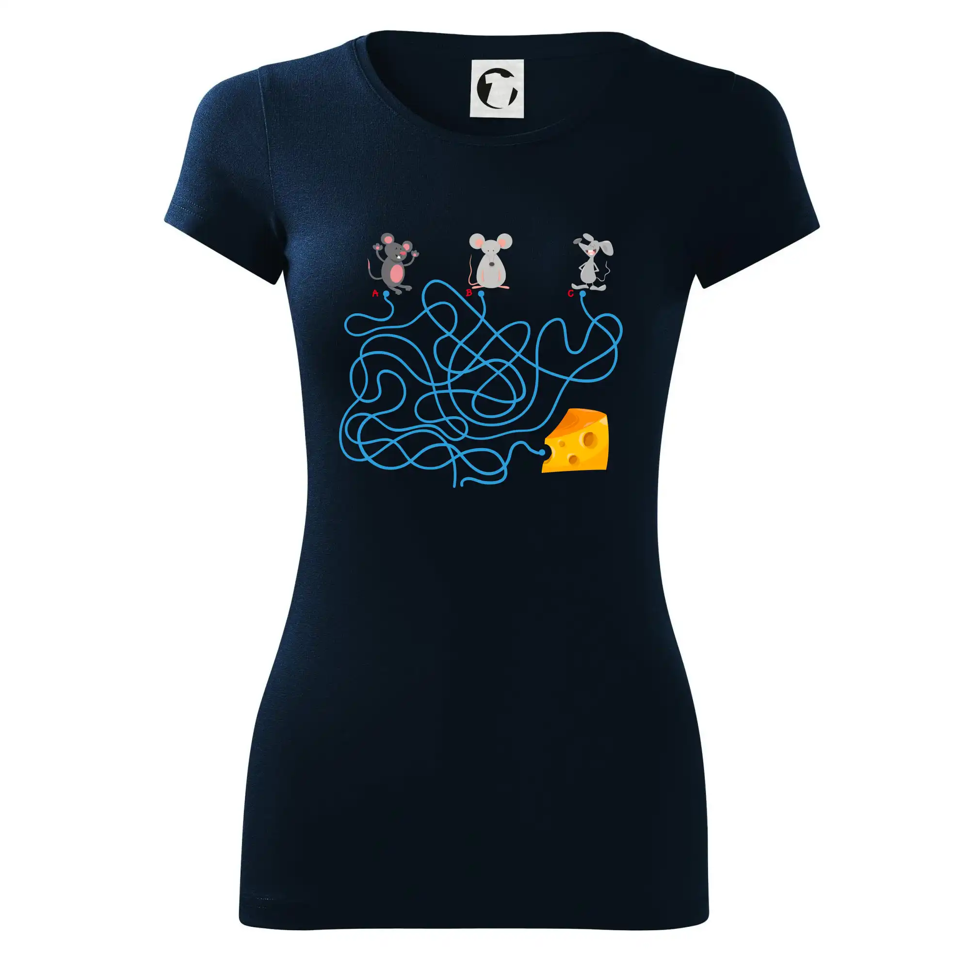 Tričko myšací hlavolam je pre Teba to pravé, ak si milovník hlavolamov a hádaniek alebo ak máš rád myši. Tri myši, jeden syr, jedno bludisko, ktorá myška nájde cestu bludiskom ako prvá? Ja si myslím, že vyhraje biely myš. Tričko je vhodný darček pre dieťa.
