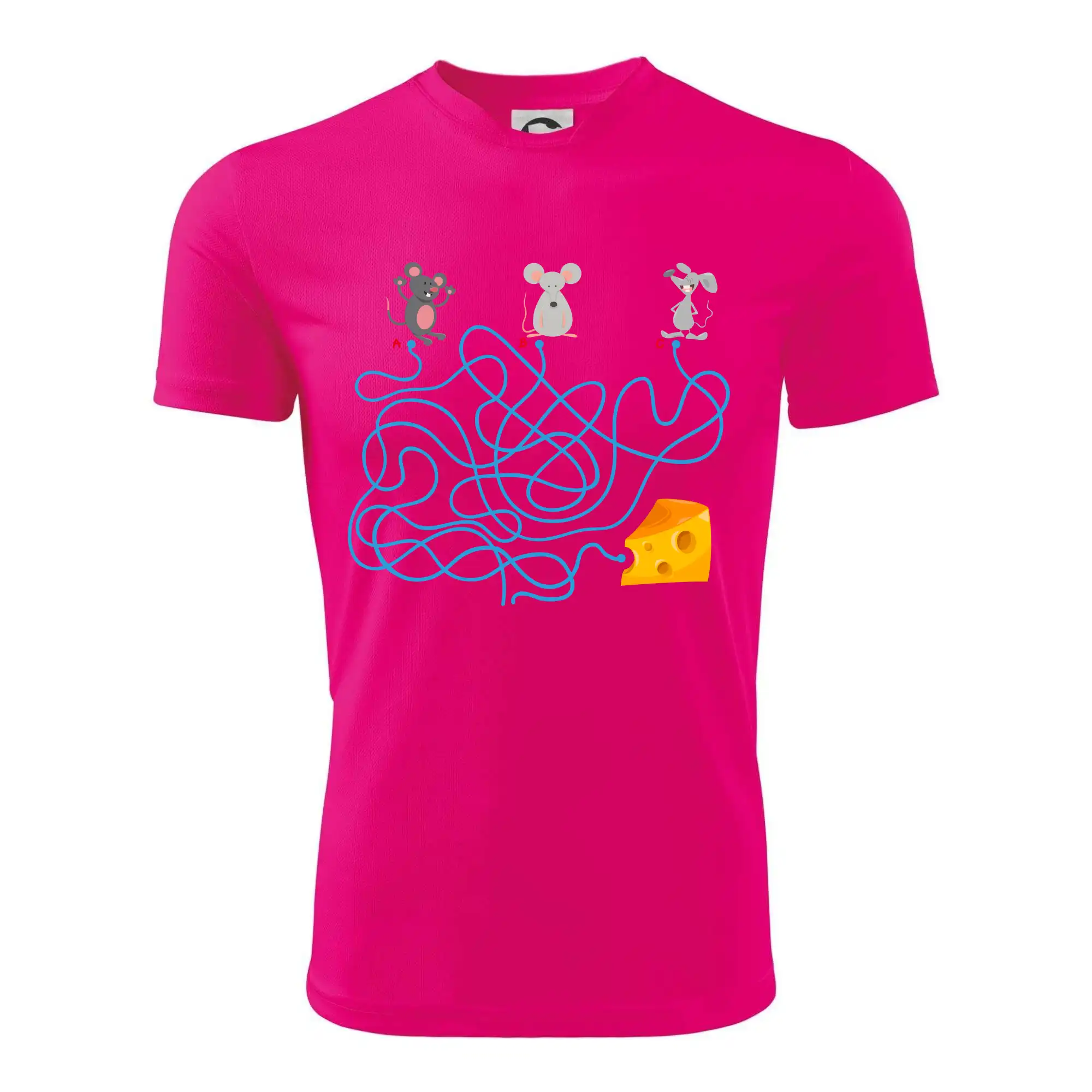 Tričko myšací hlavolam je pre Teba to pravé, ak si milovník hlavolamov a hádaniek alebo ak máš rád myši. Tri myši, jeden syr, jedno bludisko, ktorá myška nájde cestu bludiskom ako prvá? Ja si myslím, že vyhraje biely myš. Tričko je vhodný darček pre dieťa.