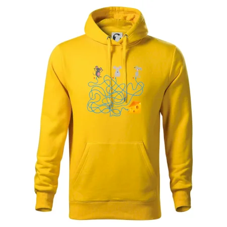 Tričko myšací hlavolam je pre Teba to pravé, ak si milovník hlavolamov a hádaniek alebo ak máš rád myši. Tri myši, jeden syr, jedno bludisko, ktorá myška nájde cestu bludiskom ako prvá? Ja si myslím, že vyhraje biely myš. Tričko je vhodný darček pre dieťa.