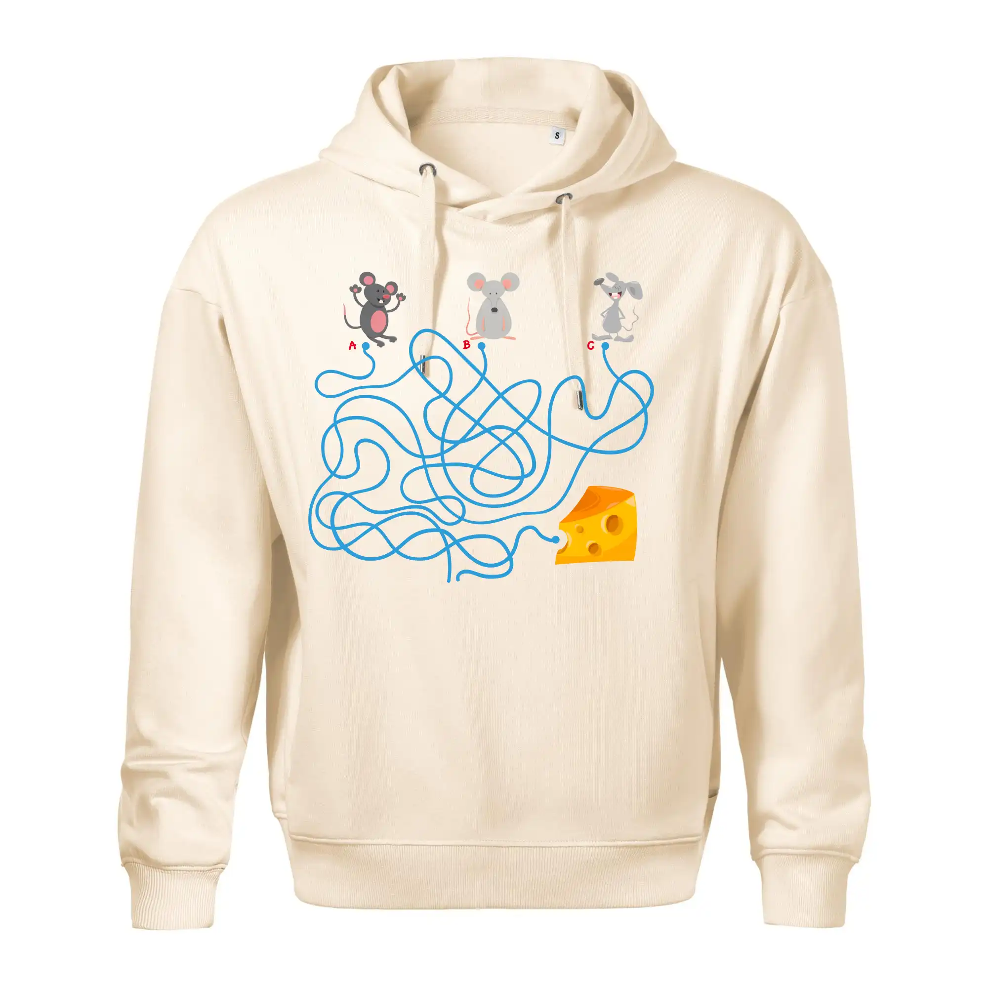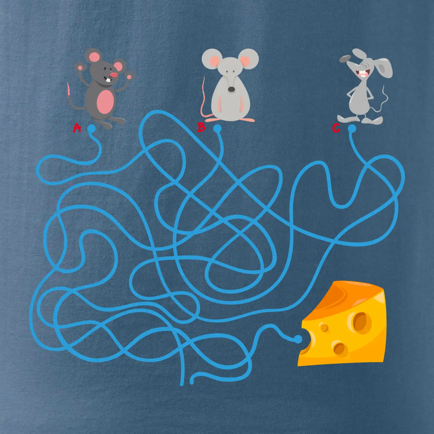 Tričko myšací hlavolam je pre Teba to pravé, ak si milovník hlavolamov a hádaniek alebo ak máš rád myši. Tri myši, jeden syr, jedno bludisko, ktorá myška nájde cestu bludiskom ako prvá? Ja si myslím, že vyhraje biely myš. Tričko je vhodný darček pre dieťa.