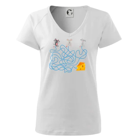 Tričko myšací hlavolam je pre Teba to pravé, ak si milovník hlavolamov a hádaniek alebo ak máš rád myši. Tri myši, jeden syr, jedno bludisko, ktorá myška nájde cestu bludiskom ako prvá? Ja si myslím, že vyhraje biely myš. Tričko je vhodný darček pre dieťa.