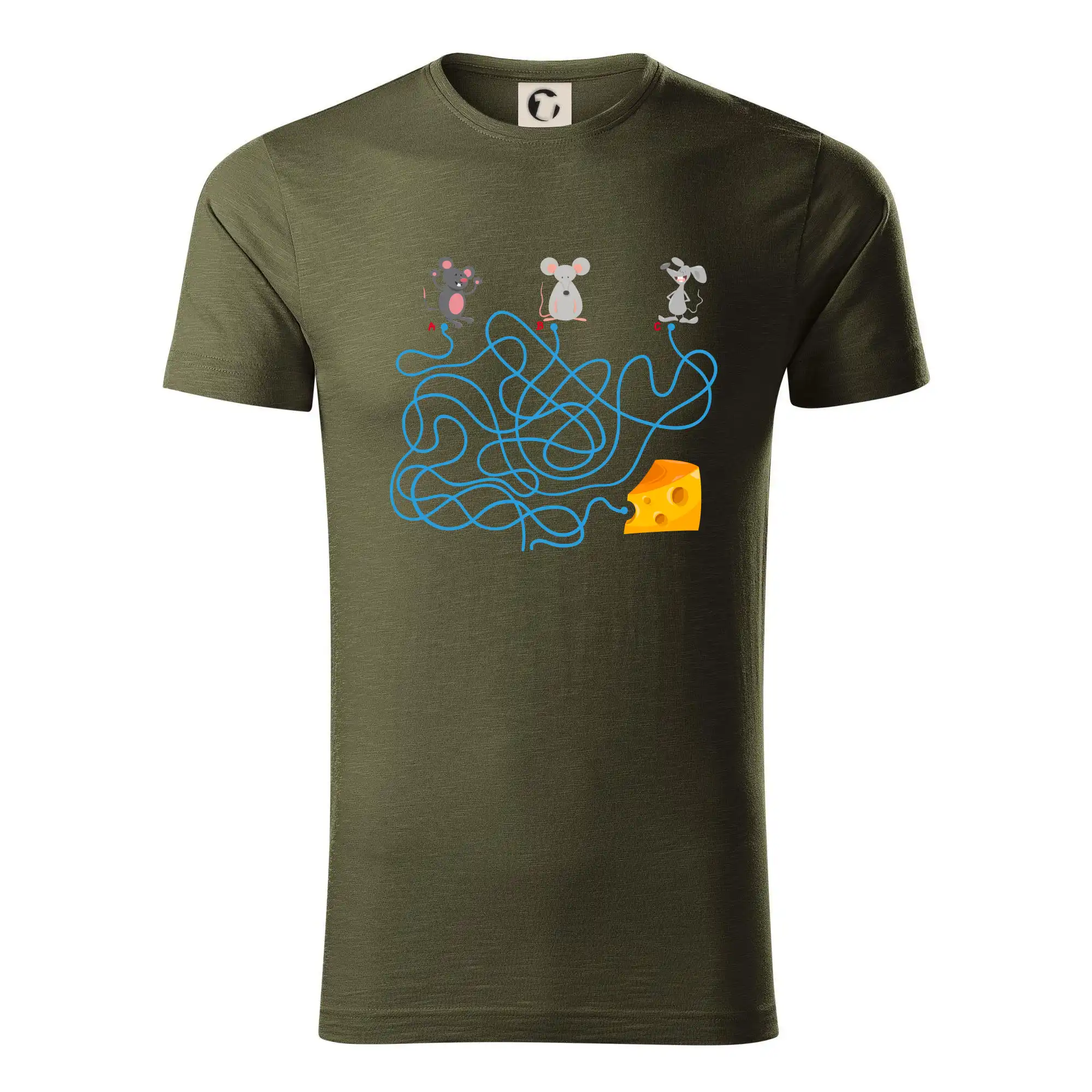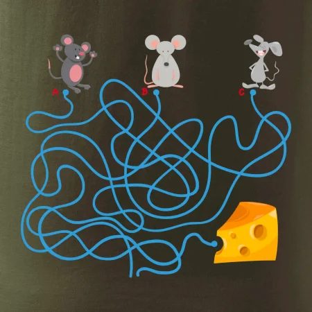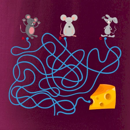 Tričko myšací hlavolam je pre Teba to pravé, ak si milovník hlavolamov a hádaniek alebo ak máš rád myši. Tri myši, jeden syr, jedno bludisko, ktorá myška nájde cestu bludiskom ako prvá? Ja si myslím, že vyhraje biely myš. Tričko je vhodný darček pre dieťa.