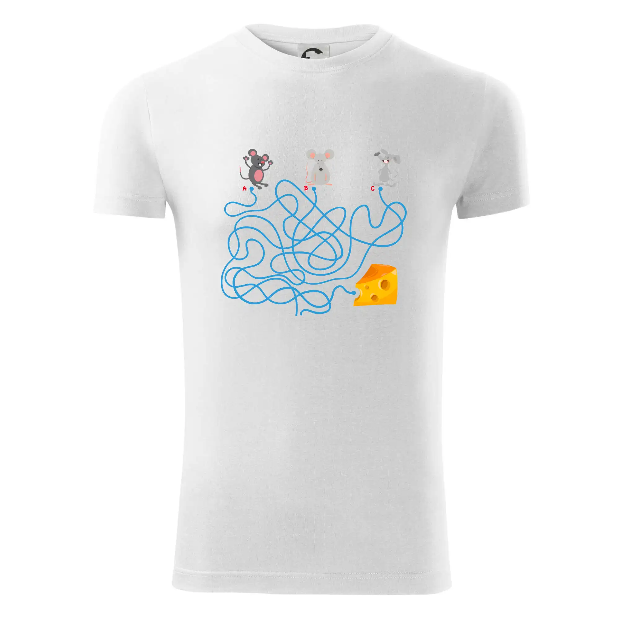 Tričko myšací hlavolam je pre Teba to pravé, ak si milovník hlavolamov a hádaniek alebo ak máš rád myši. Tri myši, jeden syr, jedno bludisko, ktorá myška nájde cestu bludiskom ako prvá? Ja si myslím, že vyhraje biely myš. Tričko je vhodný darček pre dieťa.