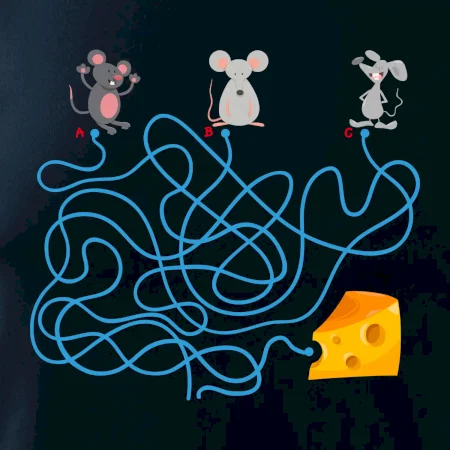 Tričko myšací hlavolam je pre Teba to pravé, ak si milovník hlavolamov a hádaniek alebo ak máš rád myši. Tri myši, jeden syr, jedno bludisko, ktorá myška nájde cestu bludiskom ako prvá? Ja si myslím, že vyhraje biely myš. Tričko je vhodný darček pre dieťa.