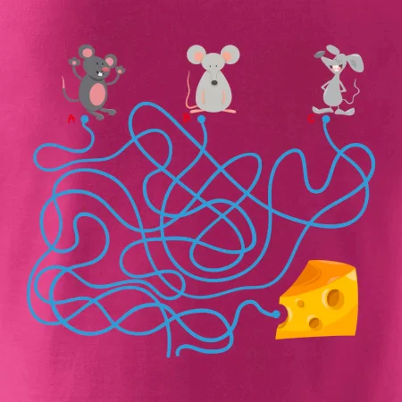 Tričko myšací hlavolam je pre Teba to pravé, ak si milovník hlavolamov a hádaniek alebo ak máš rád myši. Tri myši, jeden syr, jedno bludisko, ktorá myška nájde cestu bludiskom ako prvá? Ja si myslím, že vyhraje biely myš. Tričko je vhodný darček pre dieťa.