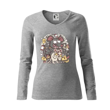 Tričko pre milovníka myší, na ktorom si myši. Pokiaľ je myš tvoje obľúbené zviera, toto tričko by ti určite nemalo chýbať! Ukáž tričkom, že máš toto zviera rád, a možno sa s tebou rozdelí aj o syr.