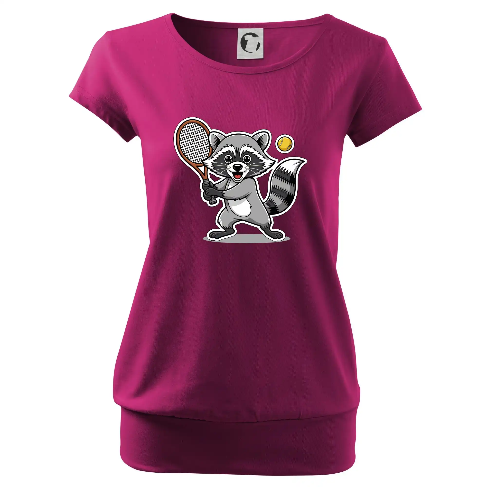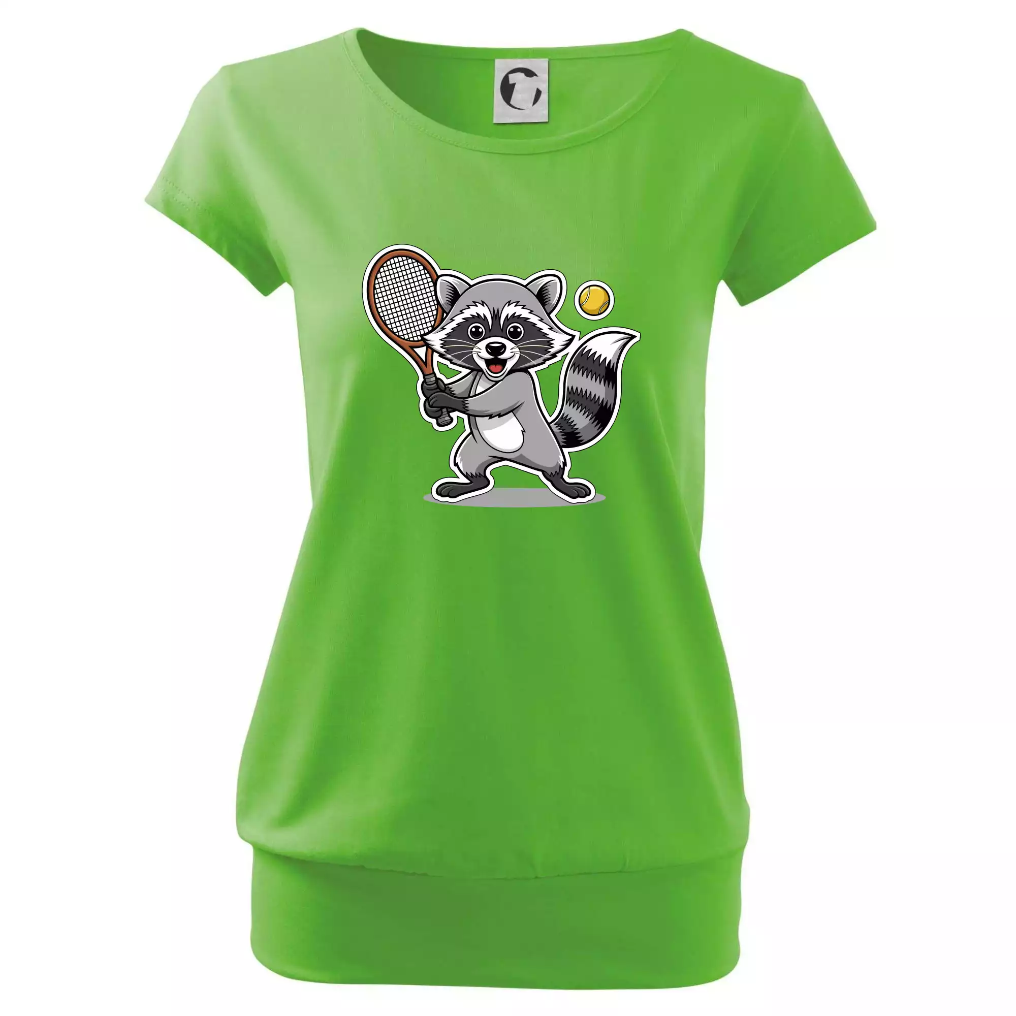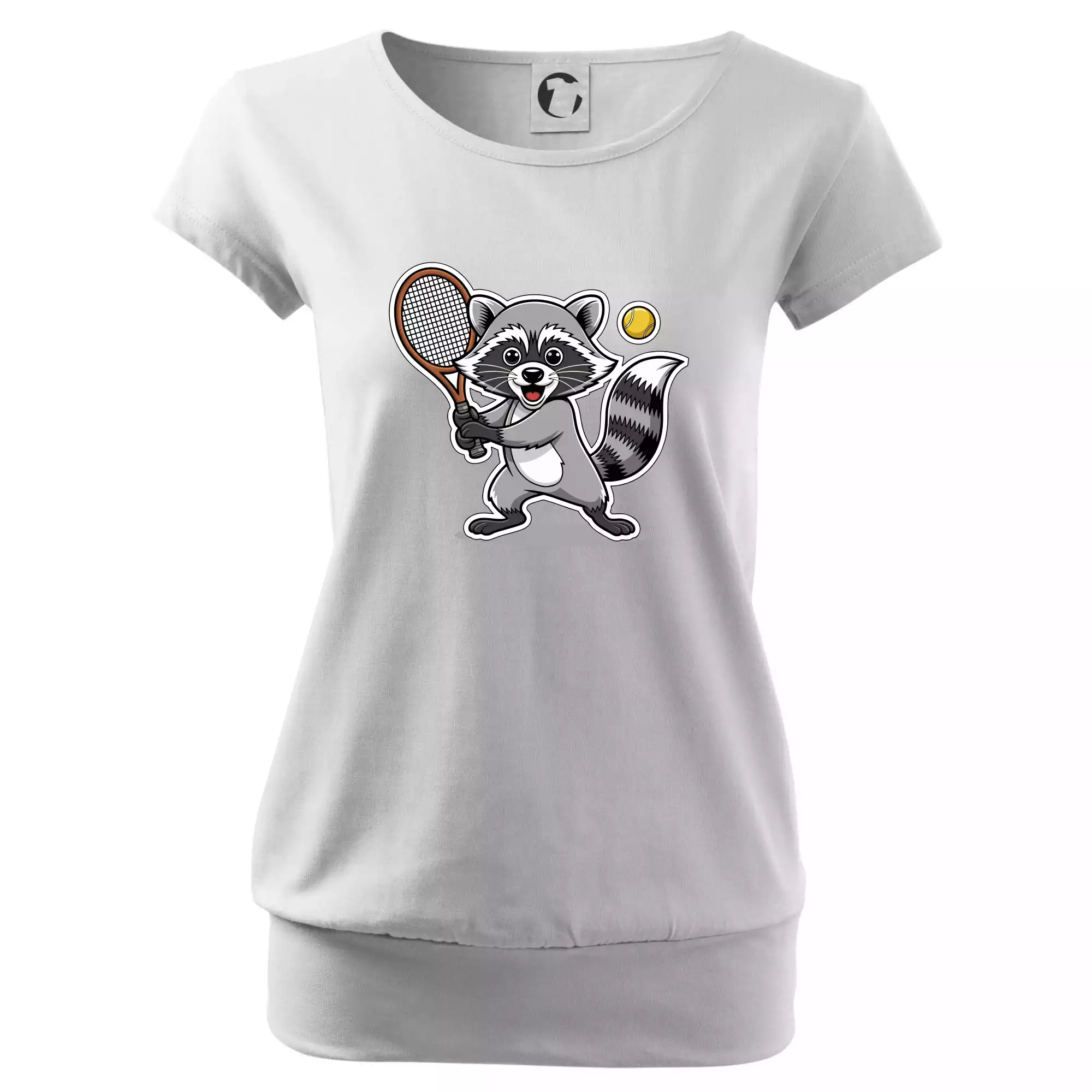 Trendové dámske tričko s veľmi krátkym rukávom, voľnejšieho strihu, v dolnom kraji všité do širokého lemu. Okrúhly priekrčník s úzkym lemom zo zhodného materiálu.