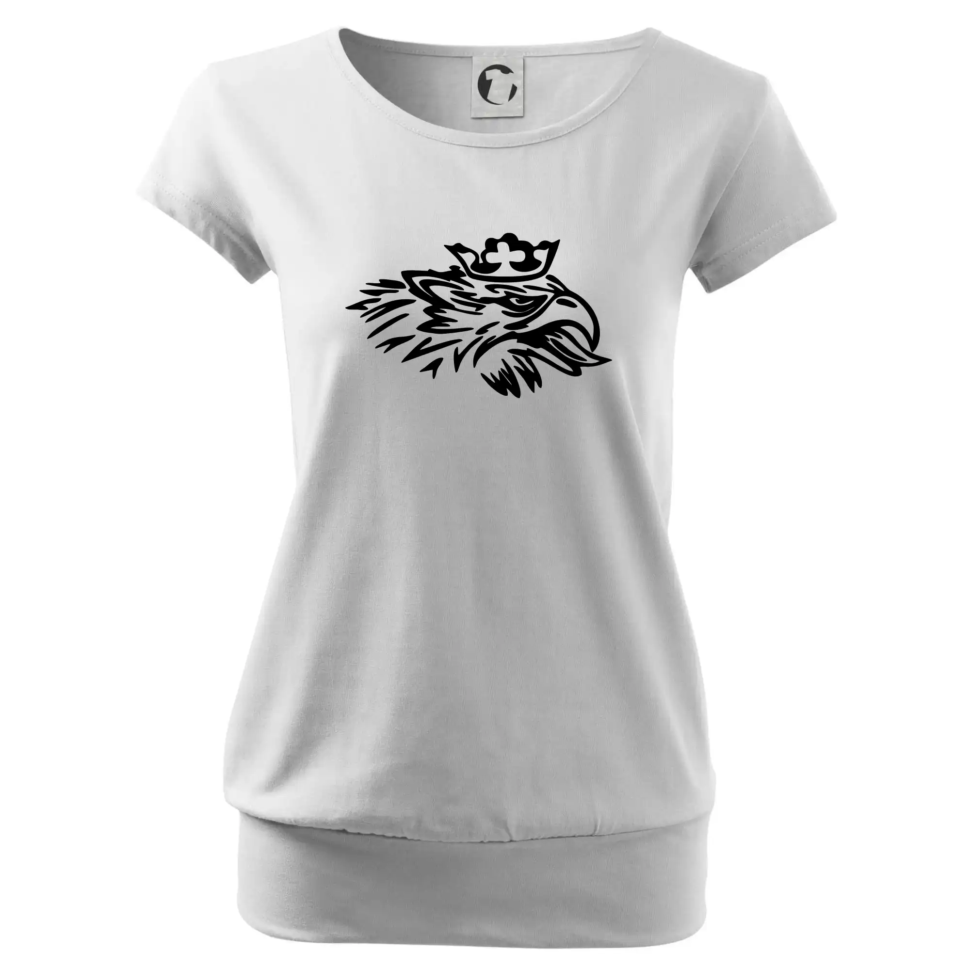 Trendové dámske tričko s veľmi krátkym rukávom, voľnejšieho strihu, v dolnom kraji všité do širokého lemu. Okrúhly priekrčník s úzkym lemom zo zhodného materiálu.