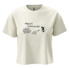 Trendové dámske tričko s veľmi krátkym rukávom, voľnejšieho strihu, v dolnom kraji všité do širokého lemu. Okrúhly priekrčník s úzkym lemom zo zhodného materiálu.