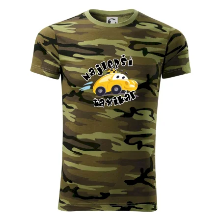 Tričko strednej gramáže vo farbách camouflage. Strih s bočnými švami. Lem priekrčníku z rebrového úpletu s prídavkom 5% elastanu. Vnútorná časť zadného priekrčníka začistená páskou vo farbe camouflage.