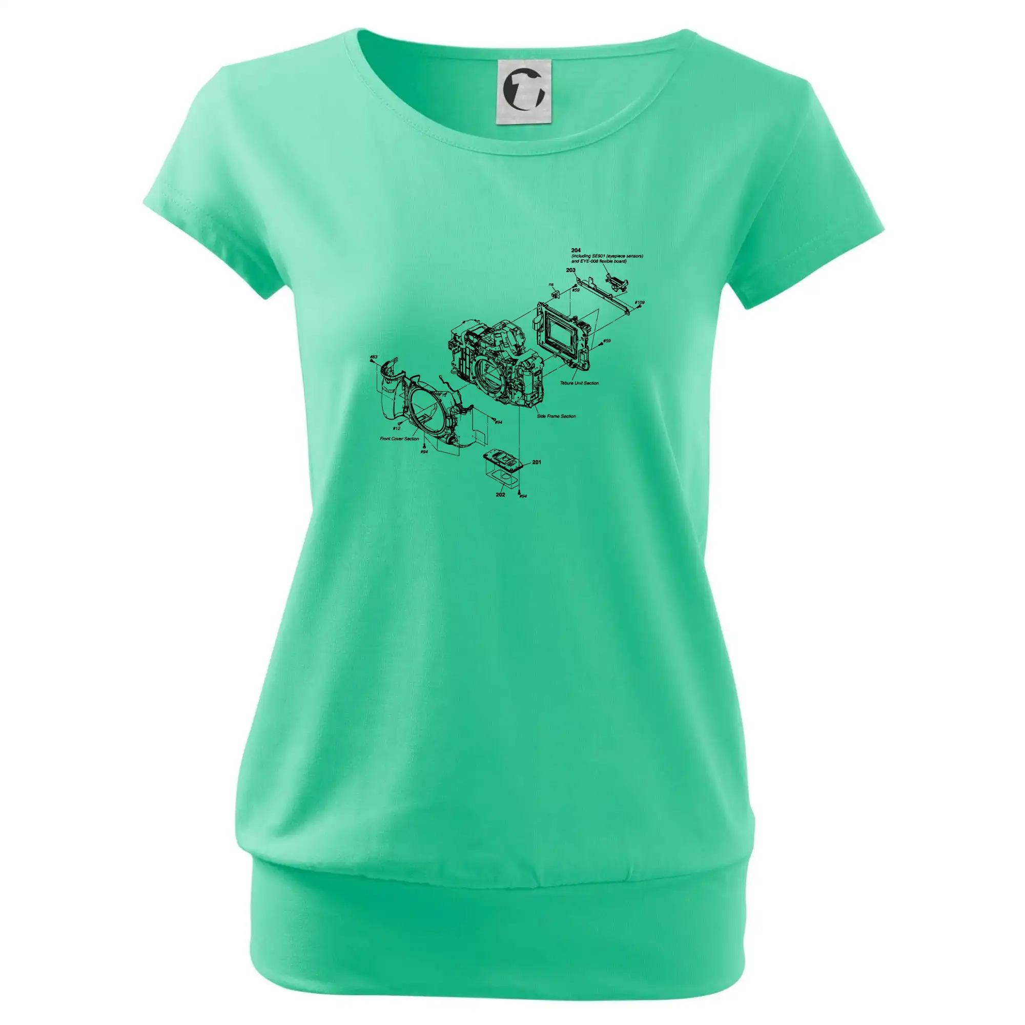 Trendové dámske tričko s veľmi krátkym rukávom, voľnejšieho strihu, v dolnom kraji všité do širokého lemu. Okrúhly priekrčník s úzkym lemom zo zhodného materiálu.