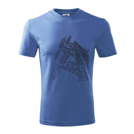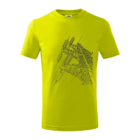 Detské tričko strednej gramáže s bočnými švami. Úzky priekrčník s prídavkom 5% elastanu. Vnútorná časť zadného priekrčníka začistená tkanou páskou. Spevnený ramenný šev.