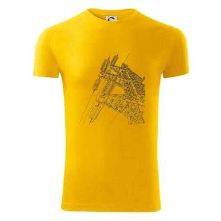 Pánske tričko s krátkym rukávom vyššej gramáže. Módne, priliehavý strih s bočnými švami. Úzky lem priekrčníka z rebrového úpletu s prídavkom 5% elastanu. Vnútorná časť zadného priekrčníku začistená páskou. Spevnený ramenný šev.