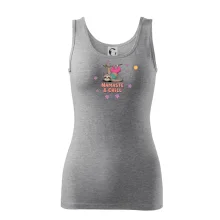 Ramená spevnené všitým prúžkom. Tričko siaha do hĺbky bokov. Silikónová úprava zabezpečuje mäkký a splývavý omak.