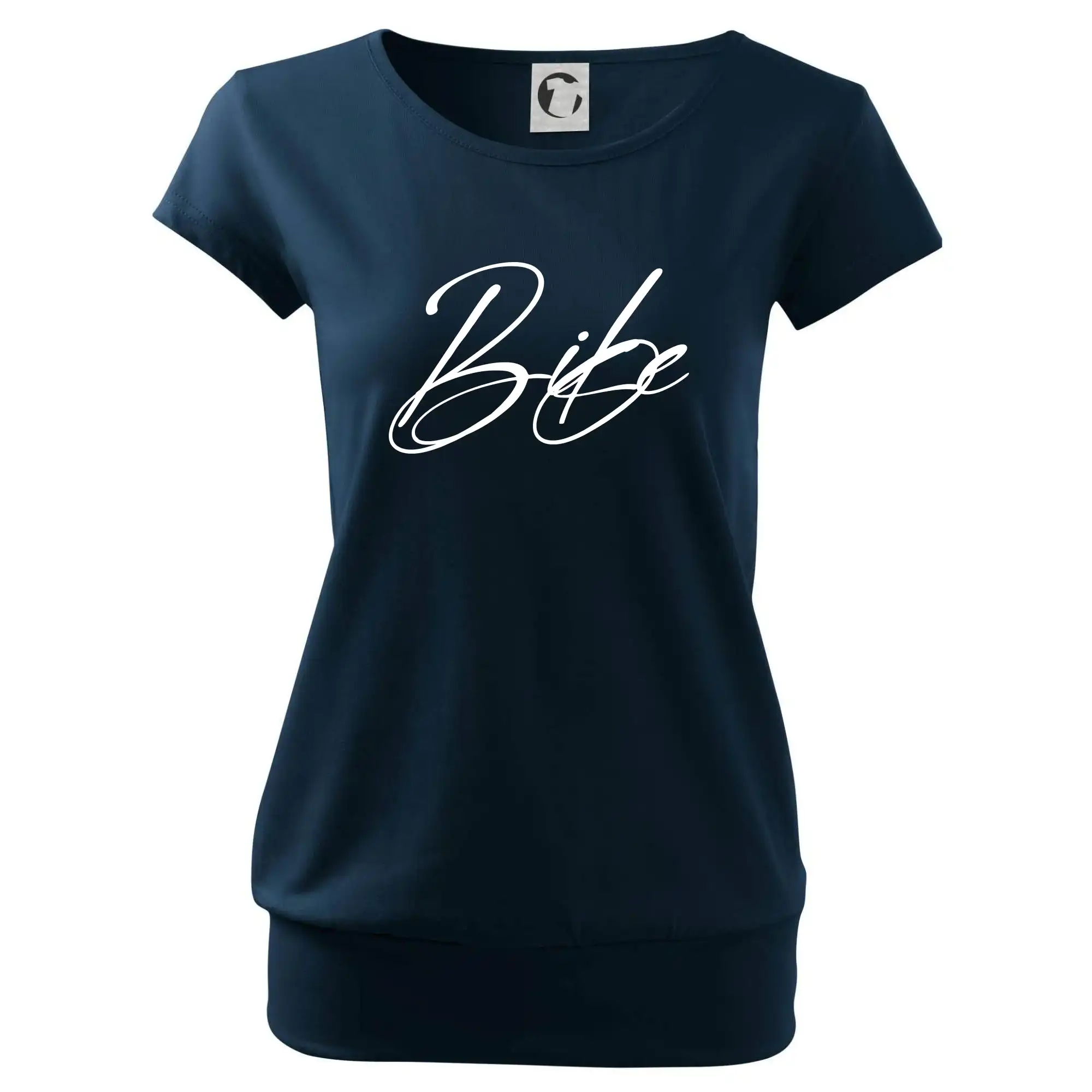 Trendové dámske tričko s veľmi krátkym rukávom, voľnejšieho strihu, v dolnom kraji všité do širokého lemu. Okrúhly priekrčník s úzkym lemom zo zhodného materiálu.