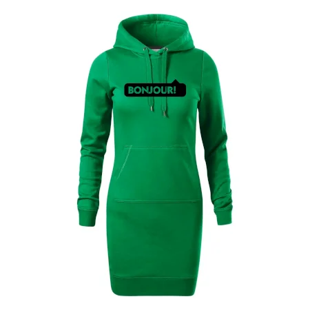 Dámske mikinové šaty MALFINI Snap 419 sú ideálnou voľbou pre ženy, ktoré hľadajú pohodlný a štýlový kúsok na voľný čas alebo každodenné nosenie. Ľahko vypasovaný strih s bočnými švami podčiarkuje ženskú siluetu, zatiaľ čo kapucňa s podšívkou a sťahovacou šnúrkou dodáva ležérny vzhľad. Šaty majú dĺžku nad kolená a sú vybavené našitým vreckom v štýle „klokanky“. Materiál je mäkký a príjemný na dotyk grâce à smesi bavlny a polyesteru s nepočesanou vnútornou stranou.
