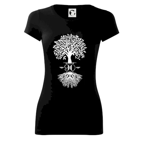 Narodeninové tričko pre oslávenca, ktorý oslavuje jubileum 90 rokov. Tričko so stromom. Darček k deväťdesiatym narodeninám.