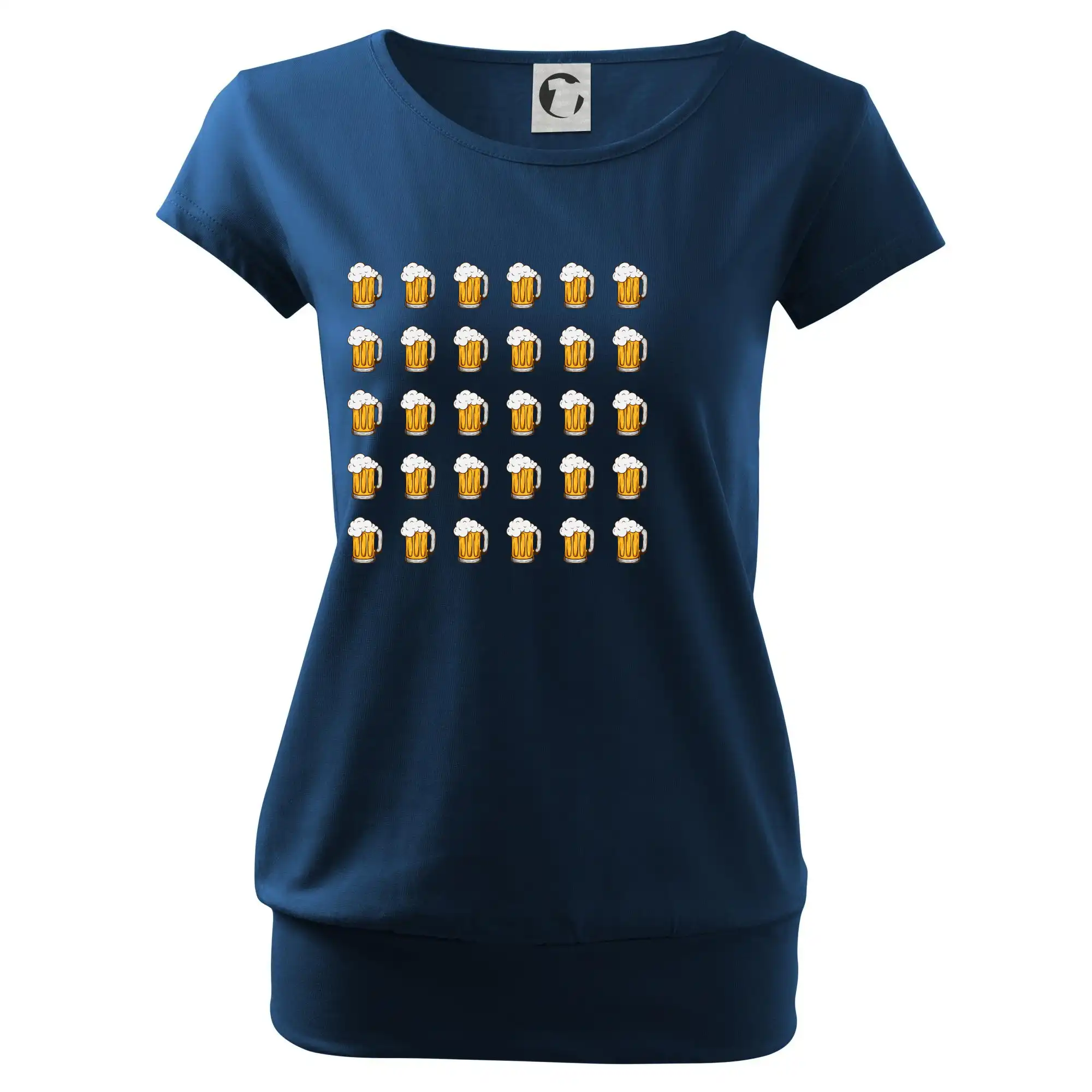 Trendové dámske tričko s veľmi krátkym rukávom, voľnejšieho strihu, v dolnom kraji všité do širokého lemu. Okrúhly priekrčník s úzkym lemom zo zhodného materiálu.