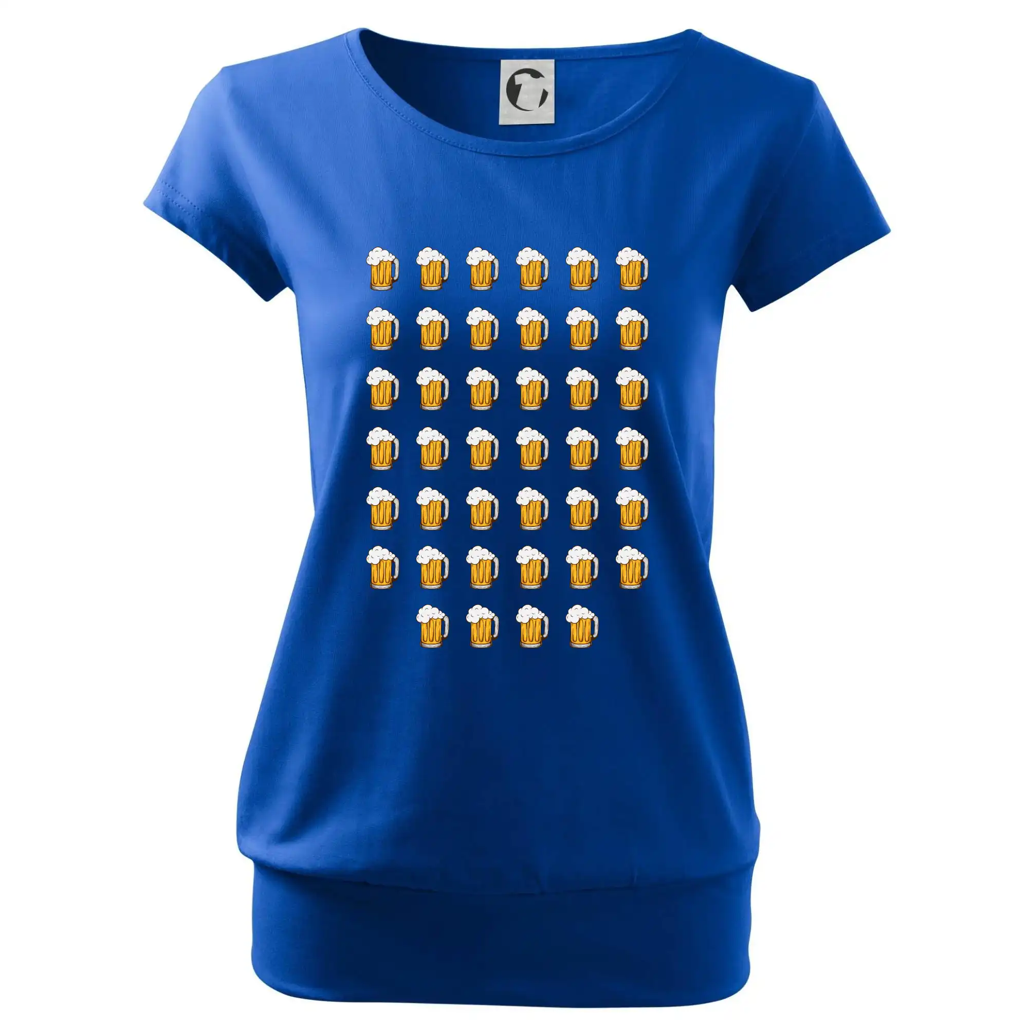 Trendové dámske tričko s veľmi krátkym rukávom, voľnejšieho strihu, v dolnom kraji všité do širokého lemu. Okrúhly priekrčník s úzkym lemom zo zhodného materiálu.