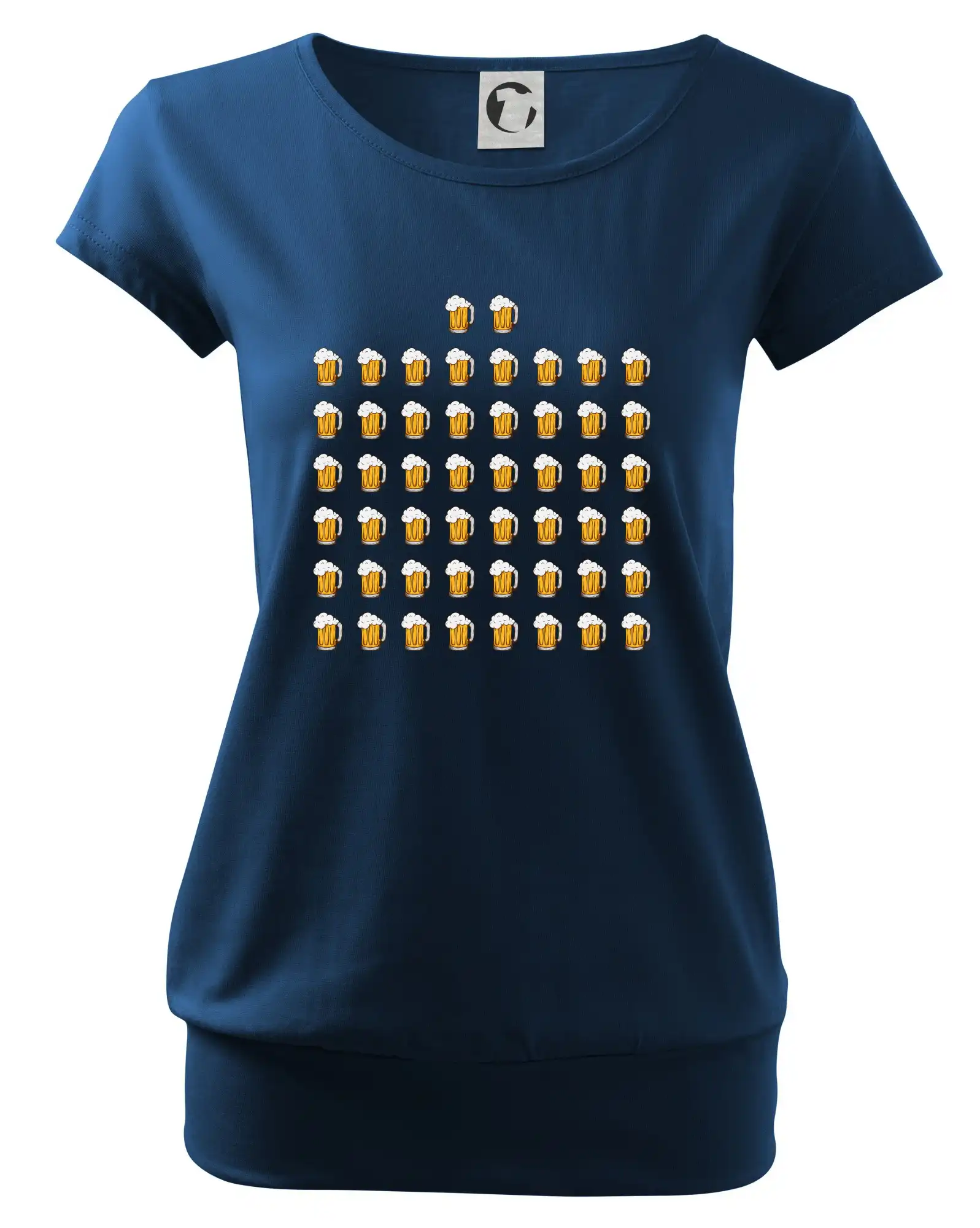 Trendové dámske tričko s veľmi krátkym rukávom, voľnejšieho strihu, v dolnom kraji všité do širokého lemu. Okrúhly priekrčník s úzkym lemom zo zhodného materiálu.