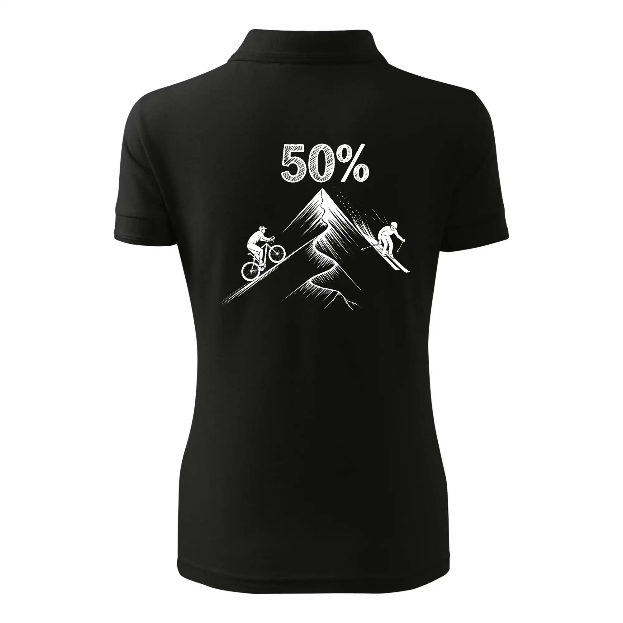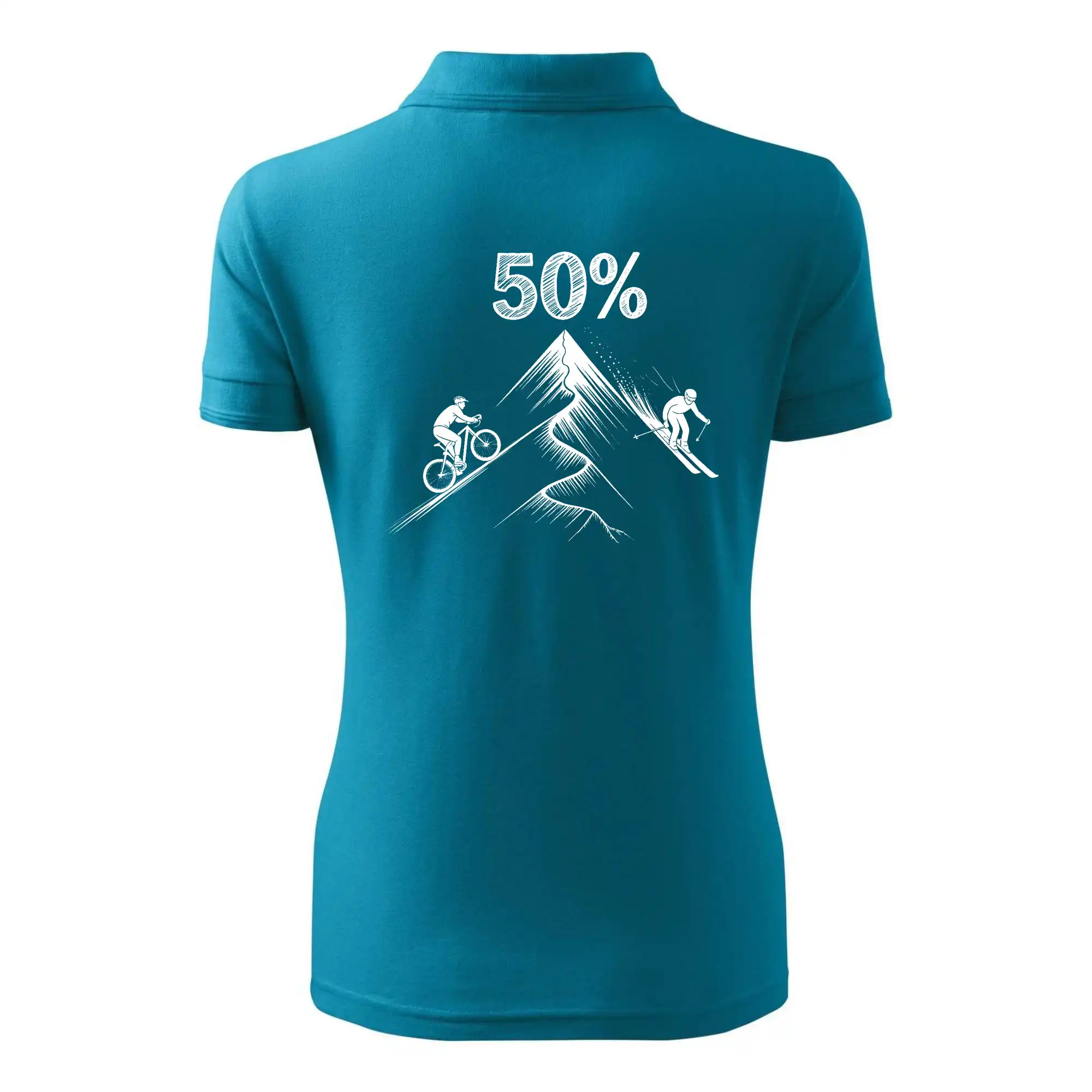 Tento motiv je parádní volba pro každého cyklistu, lyžaře nebo sportovce, který slaví půlstoletí na světě! Středový kruh zdobí výrazná číslice 50, kterou lemují stylizované obrázky kola a lyží – jasná zpráva všem kolem: tahle životní trasa vede přes trail i sjezdovku v plné parádě! Kombinace sportovních symbolů a moderní typografie dodává tričku energii a svěžest, která sluší každému dynamickému oslavenci.