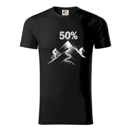 Tento motiv je parádní volba pro každého cyklistu, lyžaře nebo sportovce, který slaví půlstoletí na světě! Středový kruh zdobí výrazná číslice 50, kterou lemují stylizované obrázky kola a lyží – jasná zpráva všem kolem: tahle životní trasa vede přes trail i sjezdovku v plné parádě! Kombinace sportovních symbolů a moderní typografie dodává tričku energii a svěžest, která sluší každému dynamickému oslavenci.
