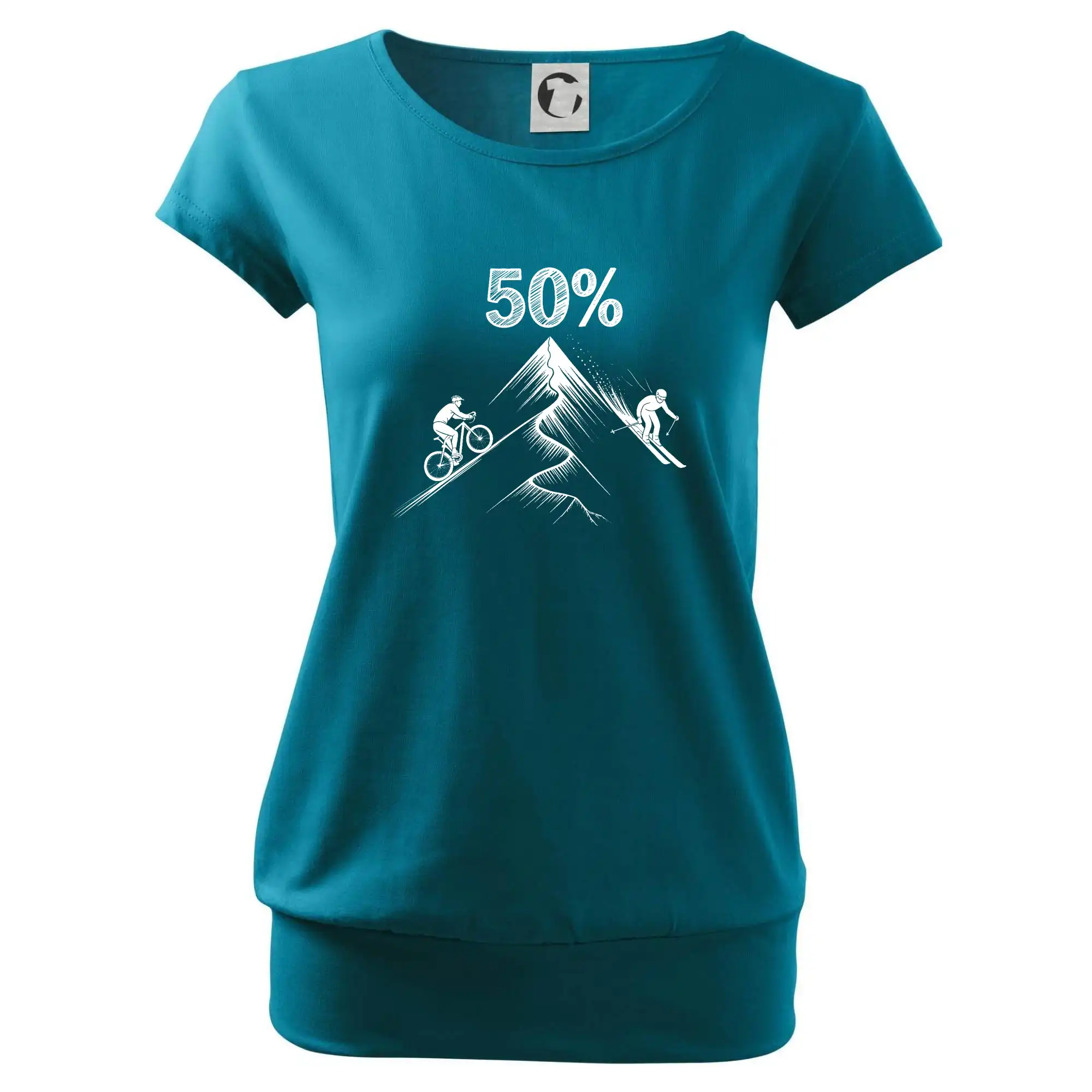 Tento motiv je parádní volba pro každého cyklistu, lyžaře nebo sportovce, který slaví půlstoletí na světě! Středový kruh zdobí výrazná číslice 50, kterou lemují stylizované obrázky kola a lyží – jasná zpráva všem kolem: tahle životní trasa vede přes trail i sjezdovku v plné parádě! Kombinace sportovních symbolů a moderní typografie dodává tričku energii a svěžest, která sluší každému dynamickému oslavenci.