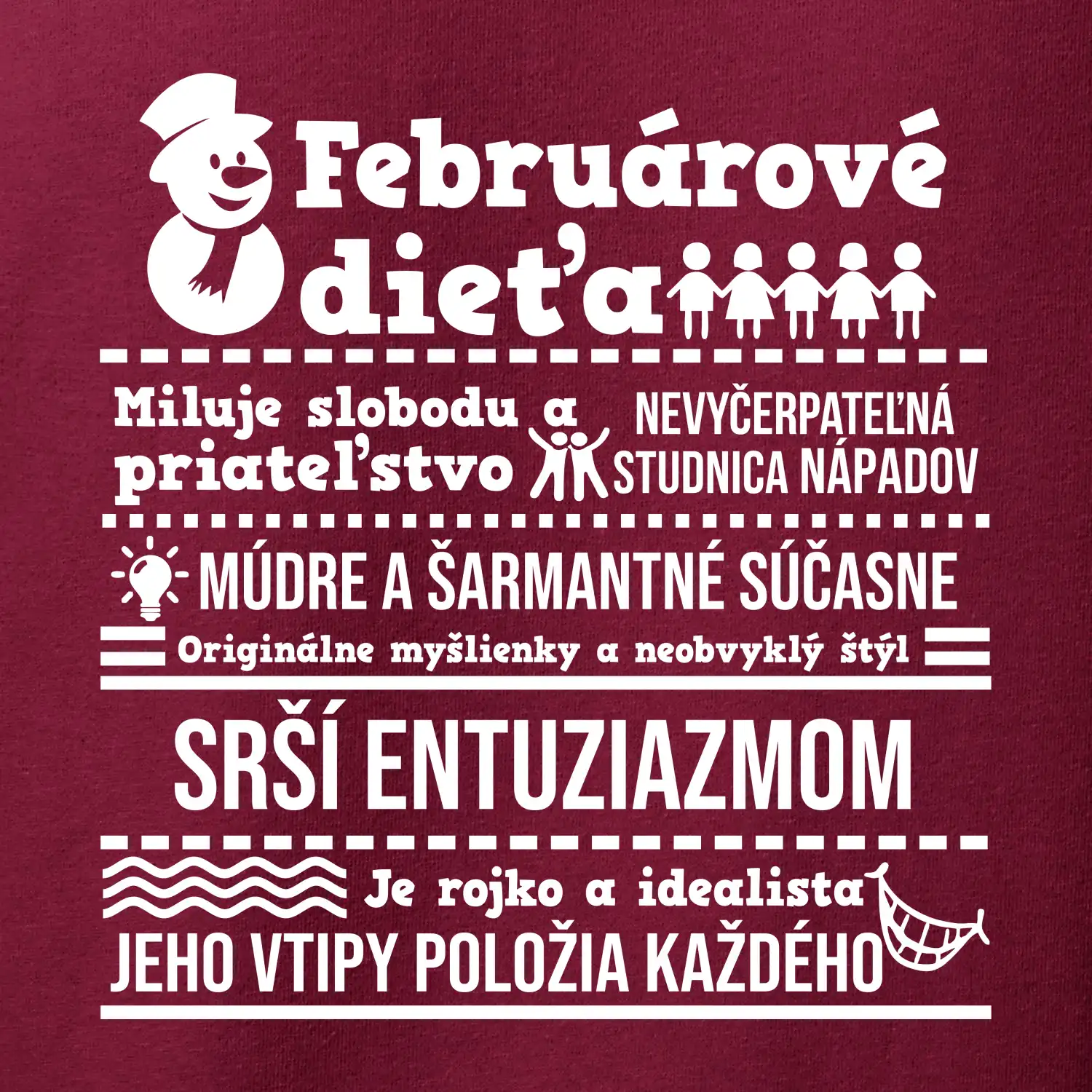 Máš ty alebo tvoj kamarát narodeniny vo februári? Skvelým darčekom určite bude toto narodeninové tričko alebo mikina, pre ľudí narodených vo februári! Nakúp hneď a máš darček k narodeninám vyriešený!