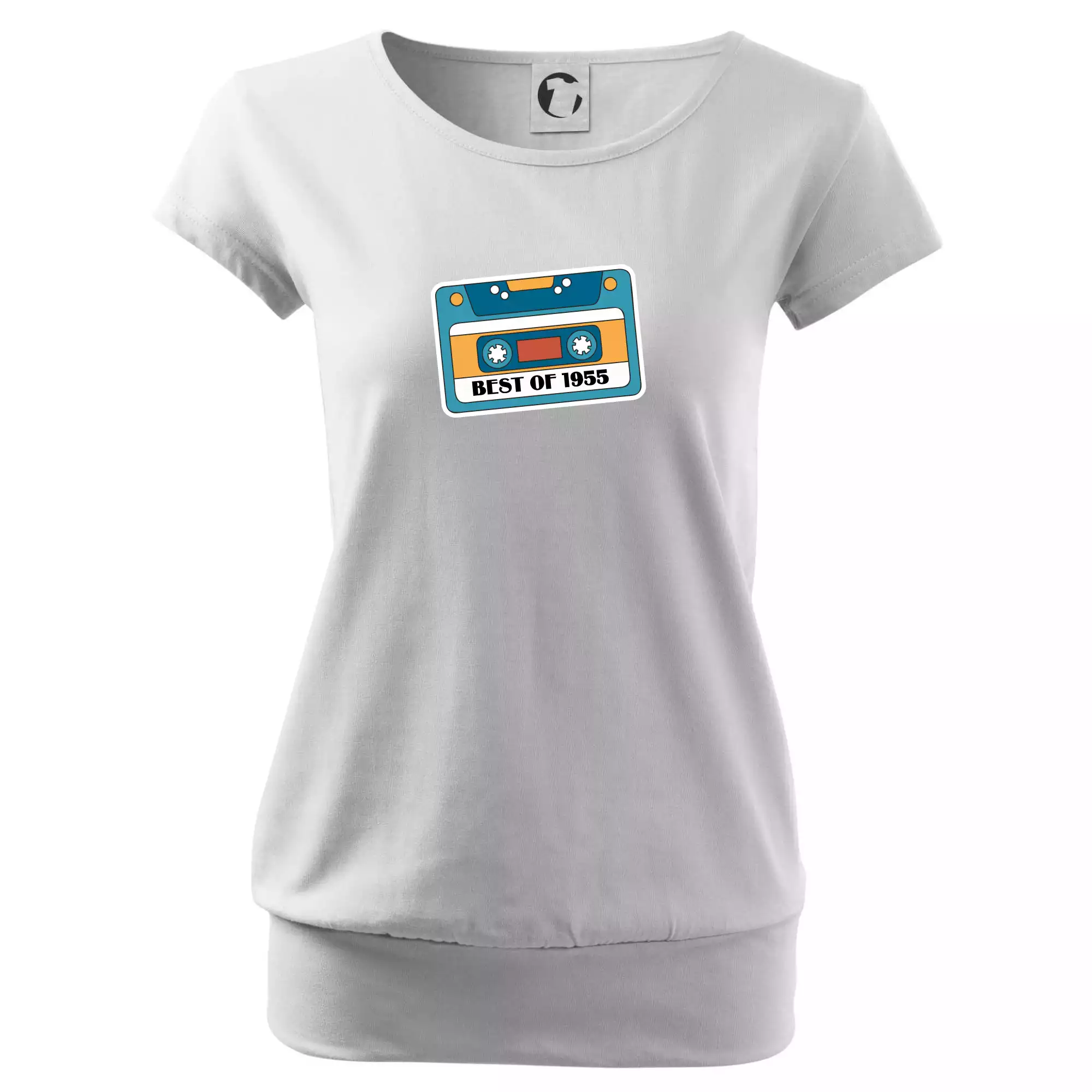 Trendové dámske tričko s veľmi krátkym rukávom, voľnejšieho strihu, v dolnom kraji všité do širokého lemu. Okrúhly priekrčník s úzkym lemom zo zhodného materiálu.