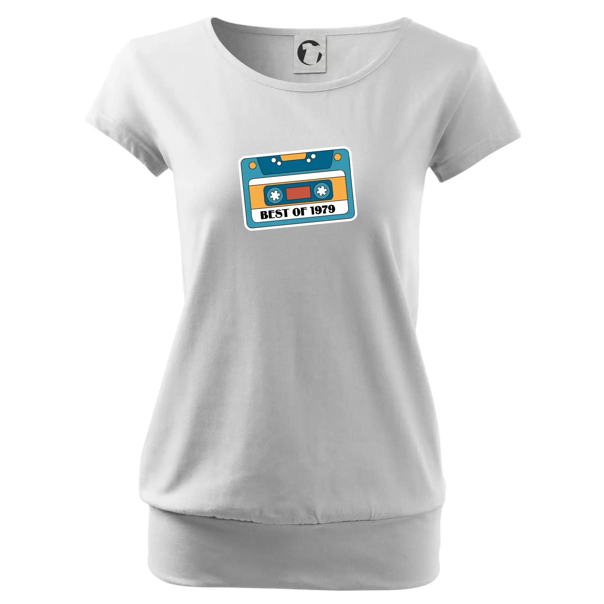 Trendové dámske tričko s veľmi krátkym rukávom, voľnejšieho strihu, v dolnom kraji všité do širokého lemu. Okrúhly priekrčník s úzkym lemom zo zhodného materiálu.