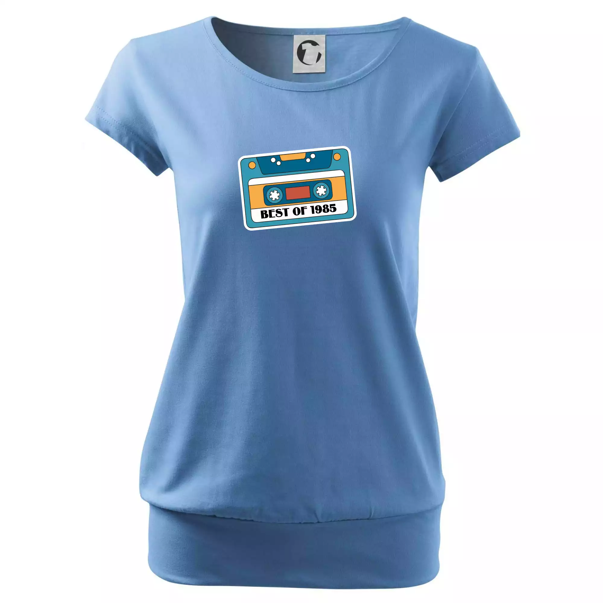 Trendové dámske tričko s veľmi krátkym rukávom, voľnejšieho strihu, v dolnom kraji všité do širokého lemu. Okrúhly priekrčník s úzkym lemom zo zhodného materiálu.