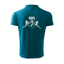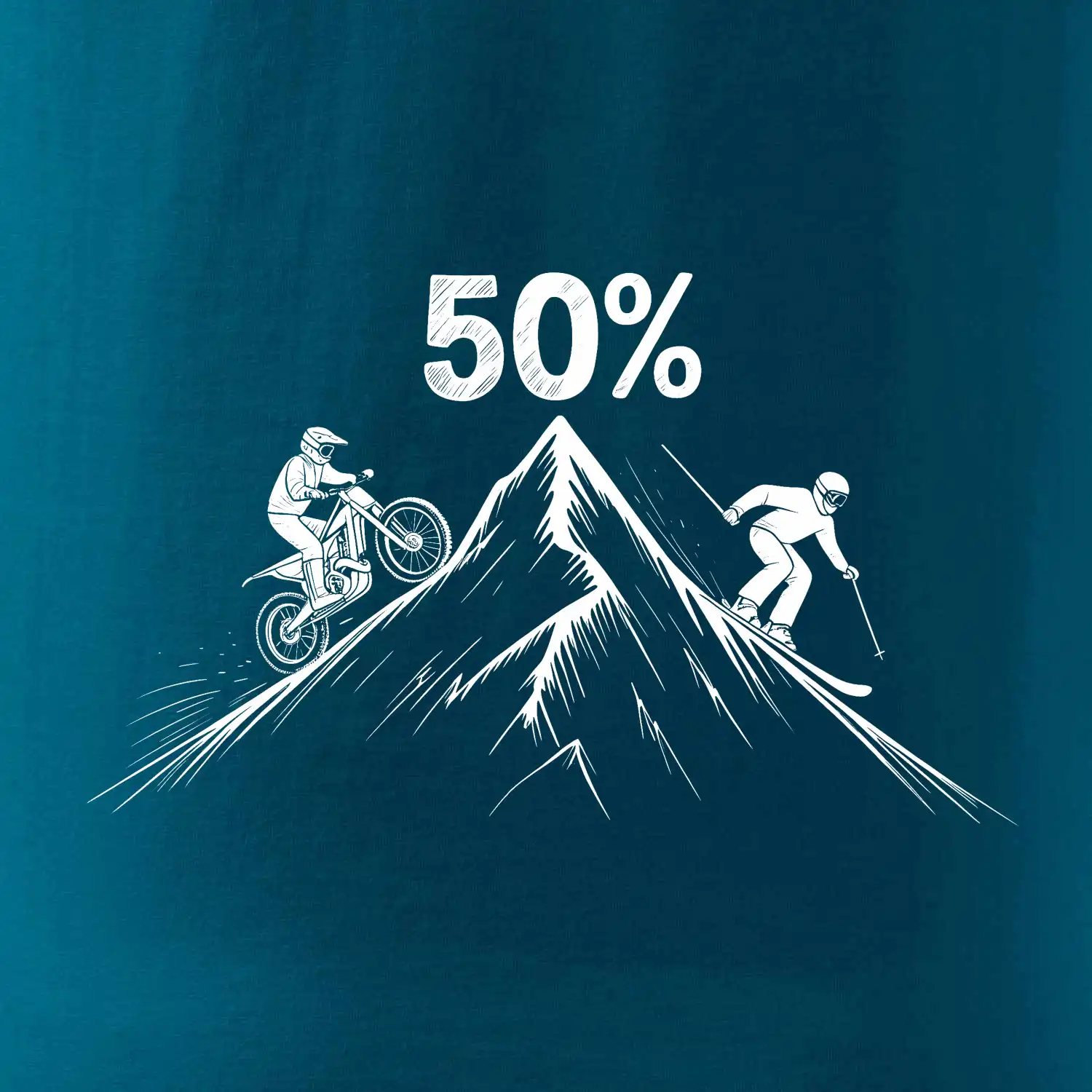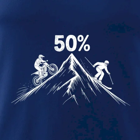 Tento motiv je parádní volba pro každého cyklistu, lyžaře nebo sportovce, který slaví půlstoletí na světě! Středový kruh zdobí výrazná číslice 50, kterou lemují stylizované obrázky MOTORKY a lyží – jasná zpráva všem kolem: tahle životní trasa vede přes trail i sjezdovku v plné parádě! Kombinace sportovních symbolů a moderní typografie dodává tričku energii a svěžest, která sluší každému dynamickému oslavenci.