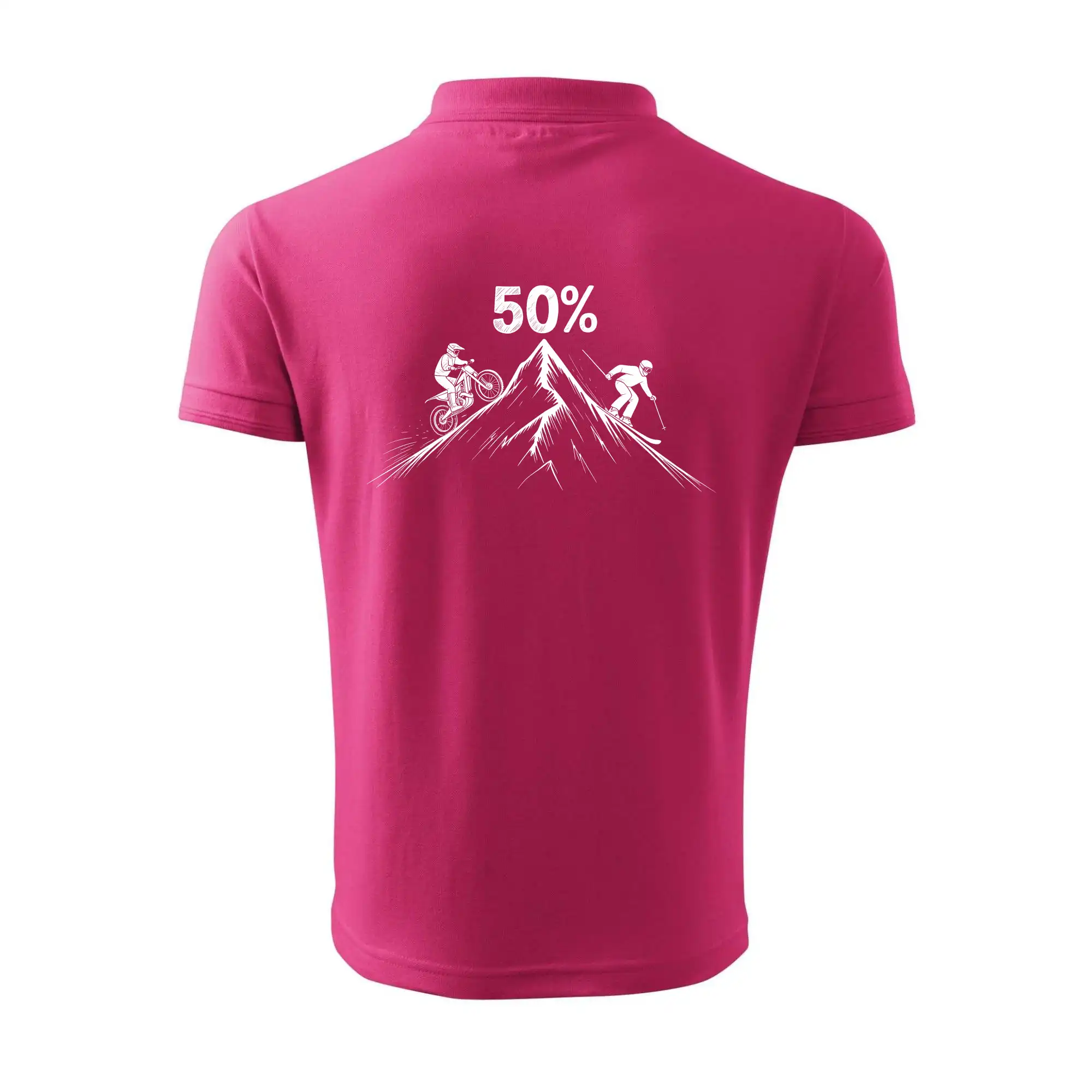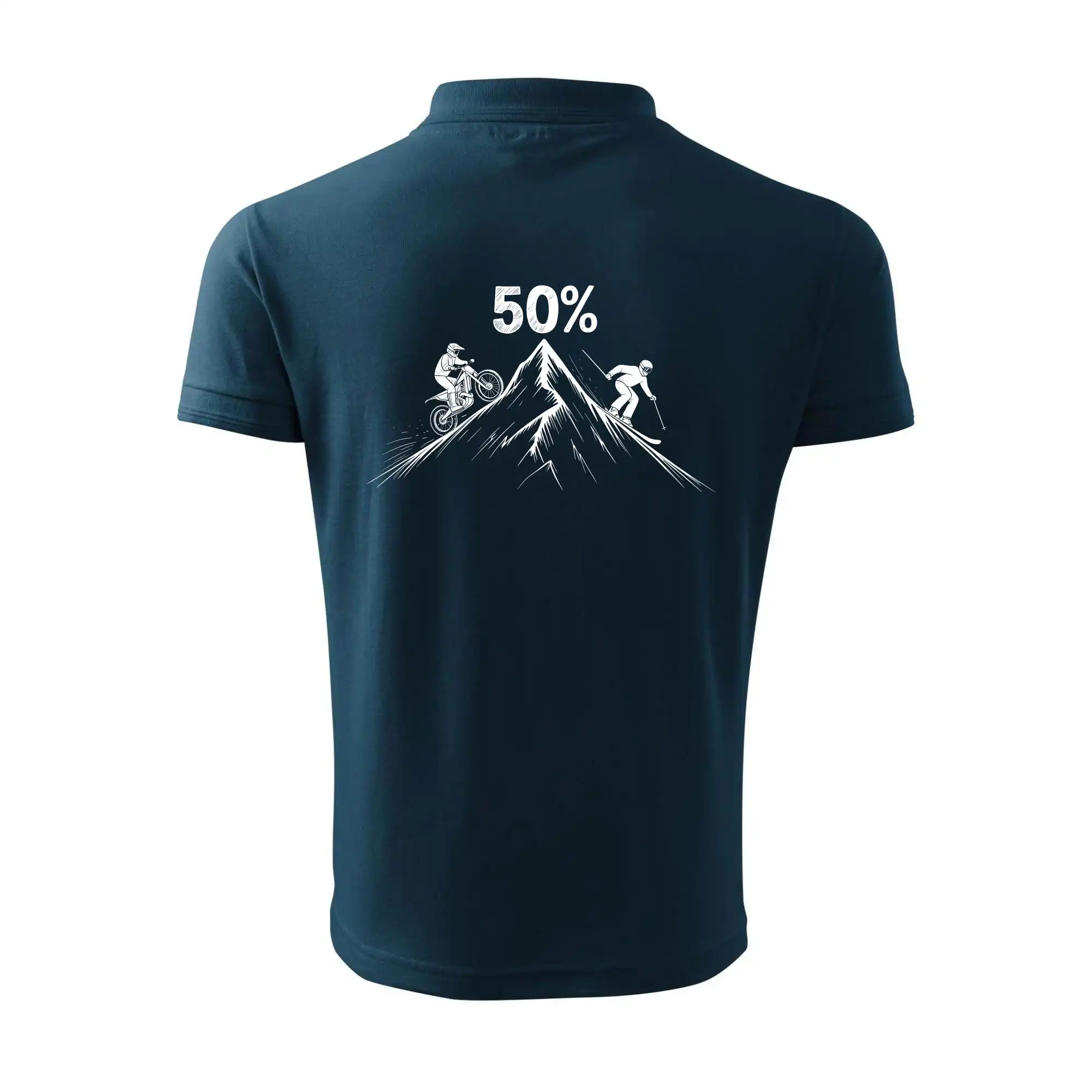 Tento motiv je parádní volba pro každého cyklistu, lyžaře nebo sportovce, který slaví půlstoletí na světě! Středový kruh zdobí výrazná číslice 50, kterou lemují stylizované obrázky MOTORKY a lyží – jasná zpráva všem kolem: tahle životní trasa vede přes trail i sjezdovku v plné parádě! Kombinace sportovních symbolů a moderní typografie dodává tričku energii a svěžest, která sluší každému dynamickému oslavenci.