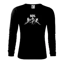 Tento motiv je parádní volba pro každého cyklistu, lyžaře nebo sportovce, který slaví půlstoletí na světě! Středový kruh zdobí výrazná číslice 50, kterou lemují stylizované obrázky MOTORKY a lyží – jasná zpráva všem kolem: tahle životní trasa vede přes trail i sjezdovku v plné parádě! Kombinace sportovních symbolů a moderní typografie dodává tričku energii a svěžest, která sluší každému dynamickému oslavenci.