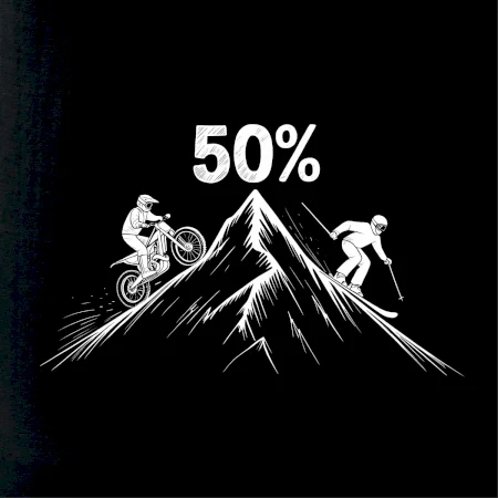 Tento motiv je parádní volba pro každého cyklistu, lyžaře nebo sportovce, který slaví půlstoletí na světě! Středový kruh zdobí výrazná číslice 50, kterou lemují stylizované obrázky MOTORKY a lyží – jasná zpráva všem kolem: tahle životní trasa vede přes trail i sjezdovku v plné parádě! Kombinace sportovních symbolů a moderní typografie dodává tričku energii a svěžest, která sluší každému dynamickému oslavenci.