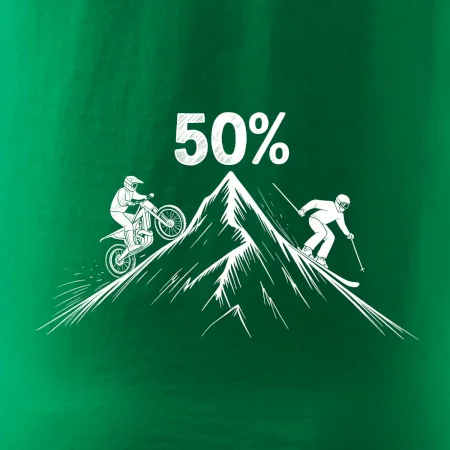 Tento motiv je parádní volba pro každého cyklistu, lyžaře nebo sportovce, který slaví půlstoletí na světě! Středový kruh zdobí výrazná číslice 50, kterou lemují stylizované obrázky MOTORKY a lyží – jasná zpráva všem kolem: tahle životní trasa vede přes trail i sjezdovku v plné parádě! Kombinace sportovních symbolů a moderní typografie dodává tričku energii a svěžest, která sluší každému dynamickému oslavenci.