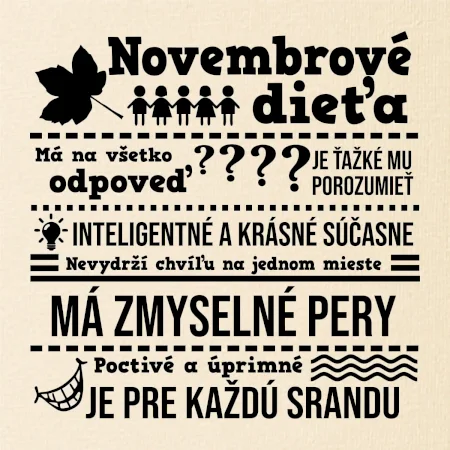 Máš ty alebo tvoj kamarát narodeniny v novembri? Skvelým darčekom určite bude toto narodeninové tričko alebo mikina, pre ľudí narodených v novembri! Nakúp hneď a máš darček k narodeninám vyriešený!