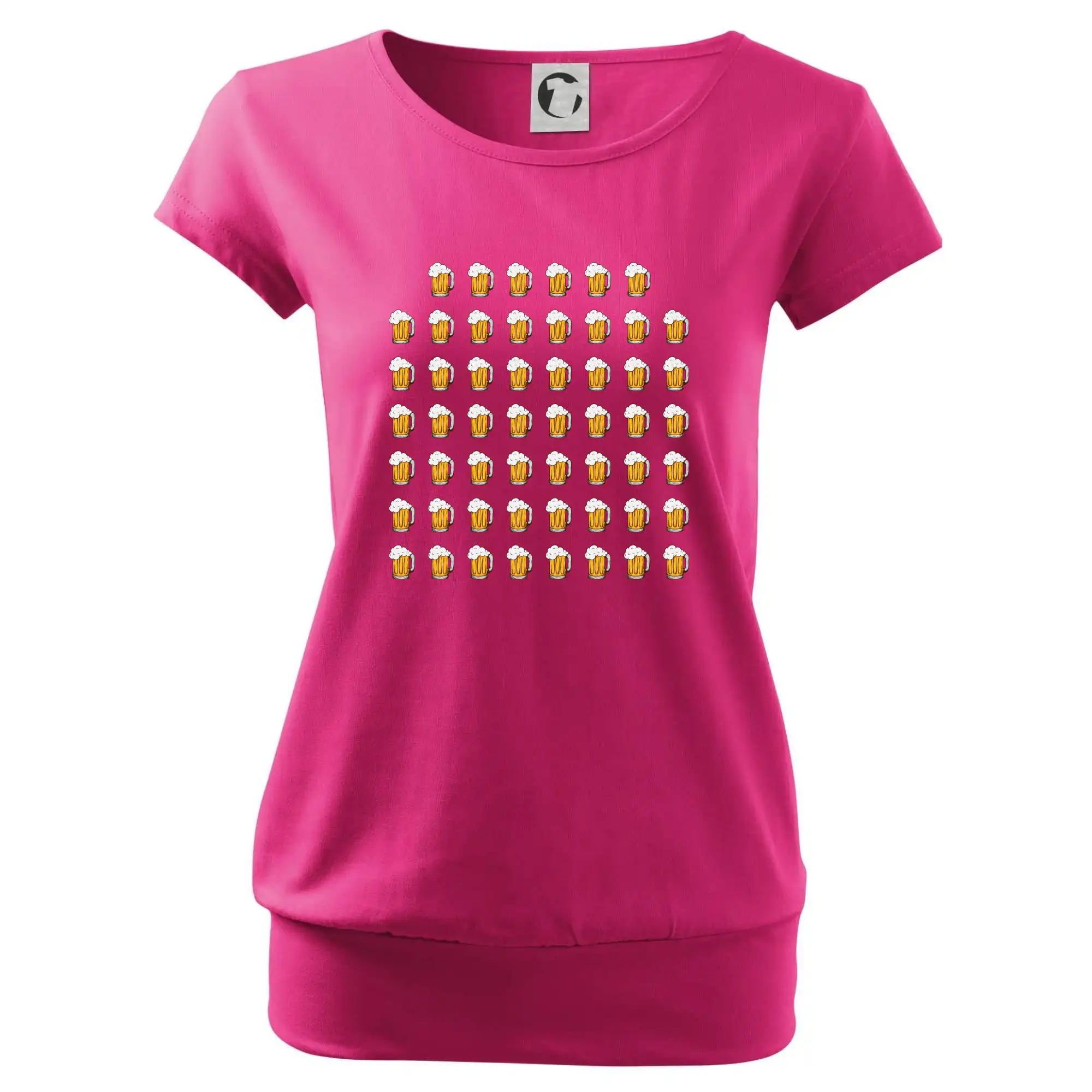 Trendové dámske tričko s veľmi krátkym rukávom, voľnejšieho strihu, v dolnom kraji všité do širokého lemu. Okrúhly priekrčník s úzkym lemom zo zhodného materiálu.