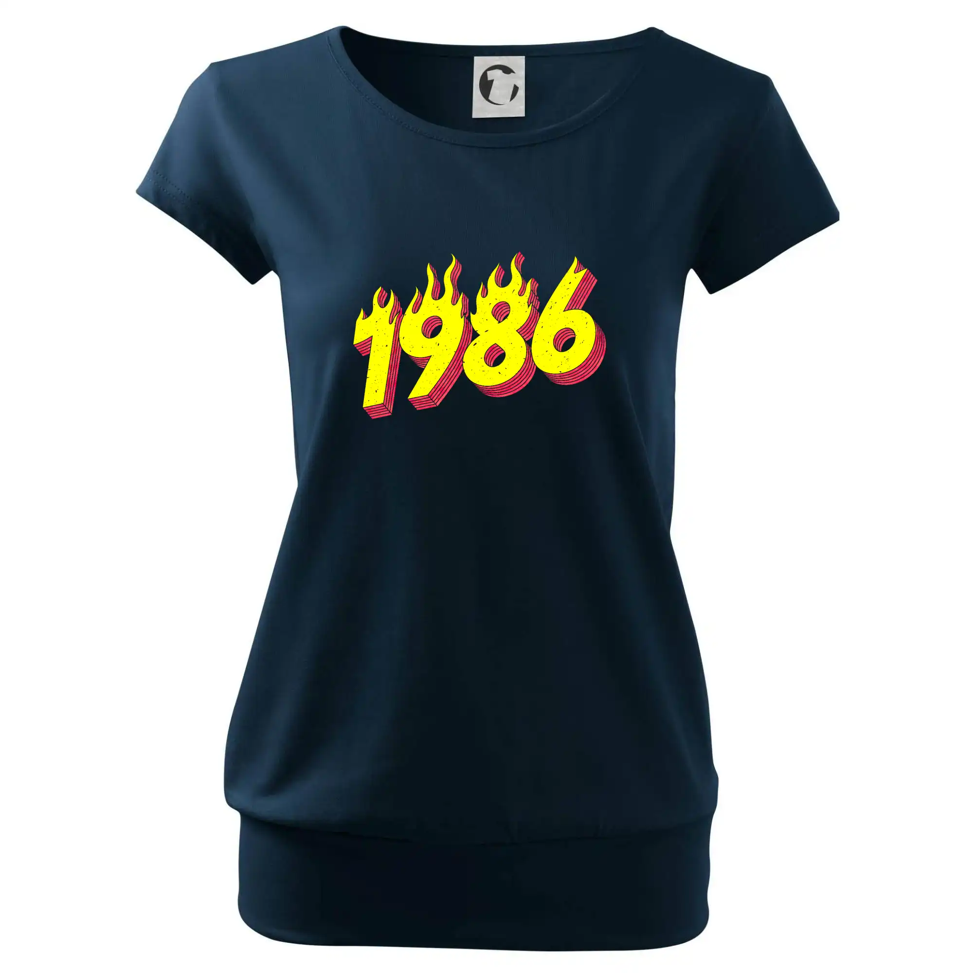 Trendové dámske tričko s veľmi krátkym rukávom, voľnejšieho strihu, v dolnom kraji všité do širokého lemu. Okrúhly priekrčník s úzkym lemom zo zhodného materiálu.