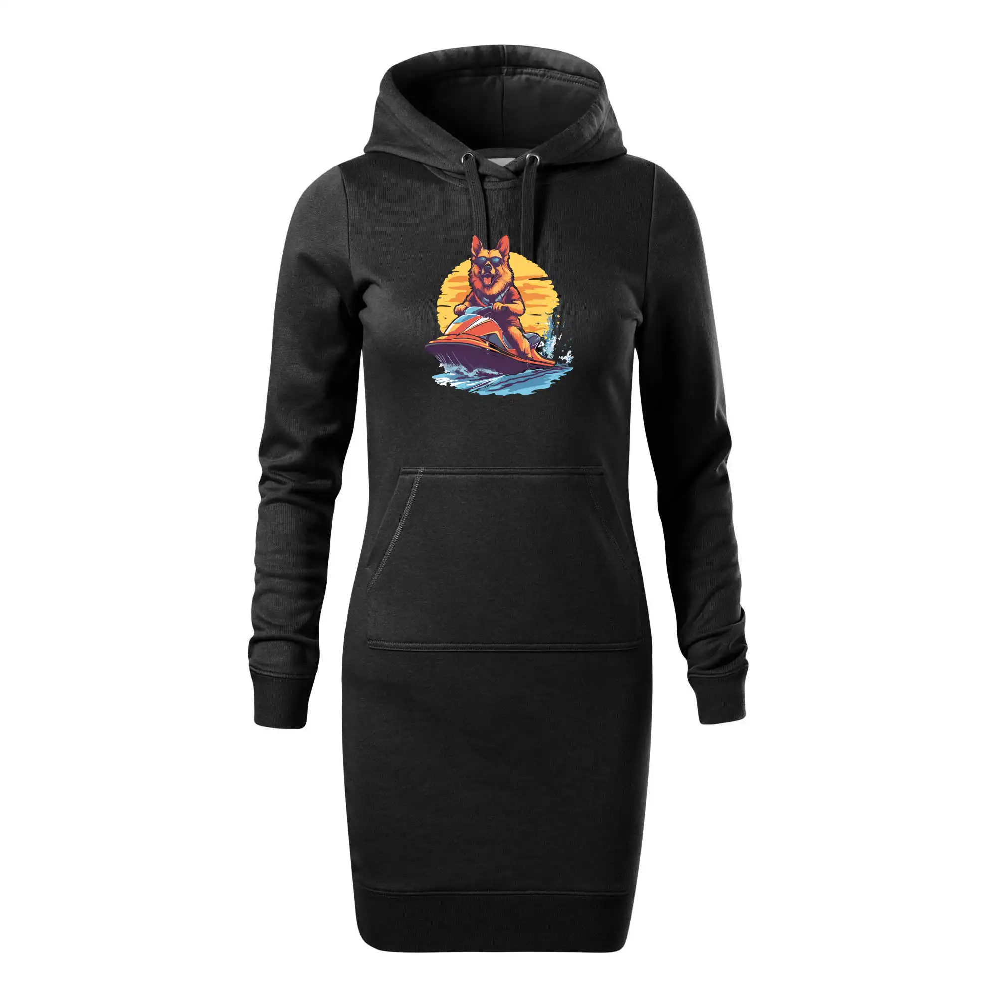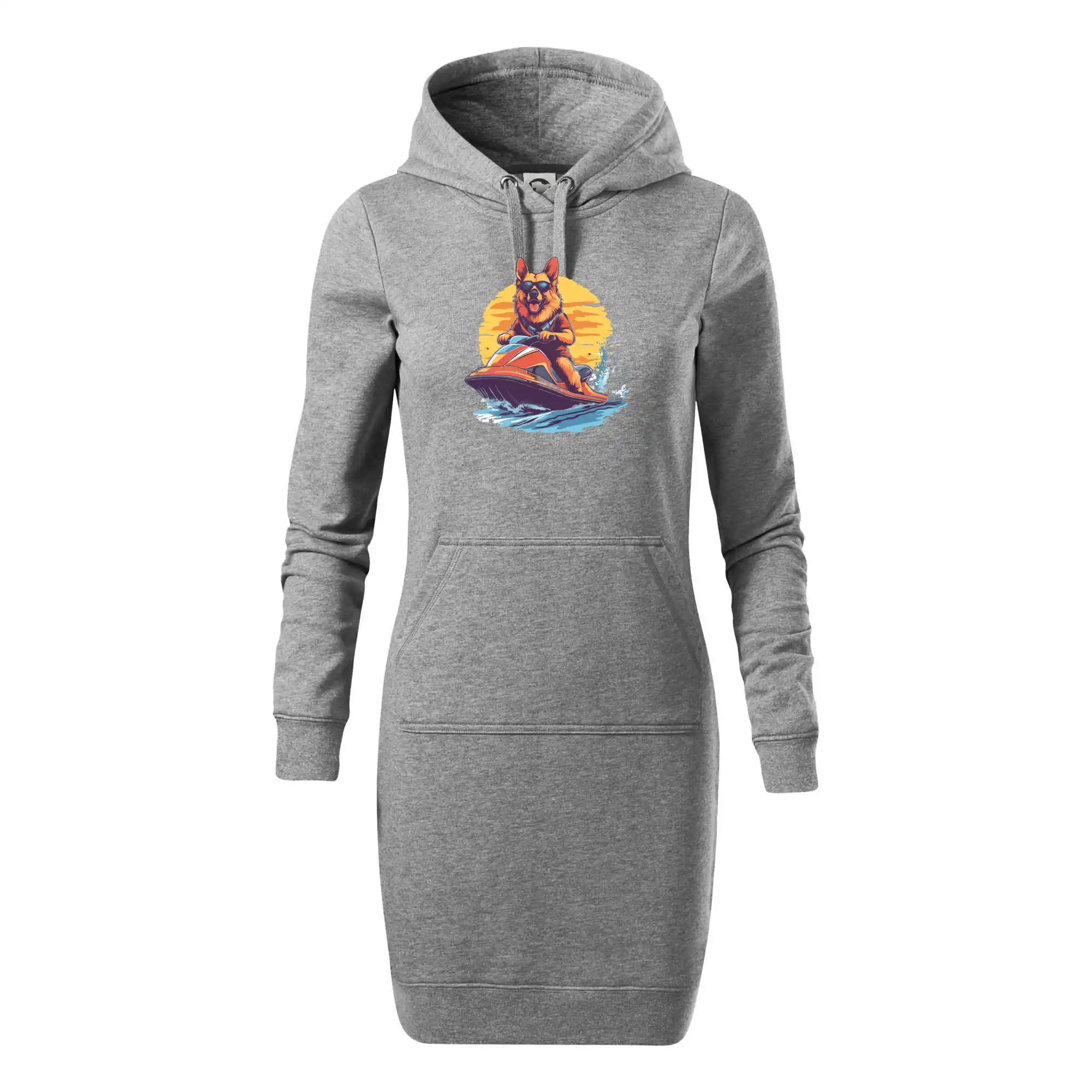 Nemecký ovčiak na vodnom skútri