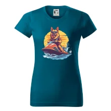 Nemecký ovčiak na vodnom skútri