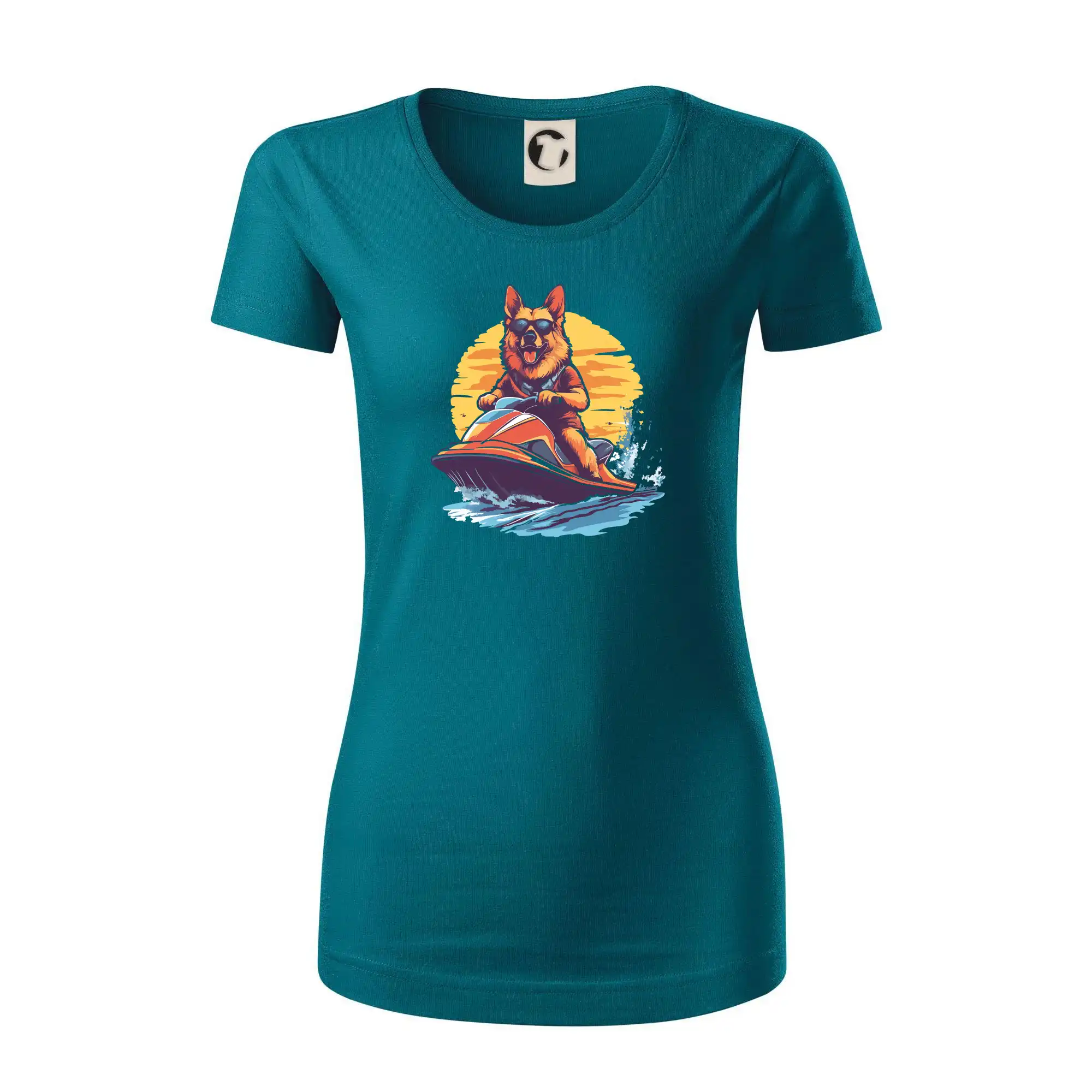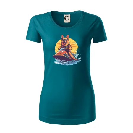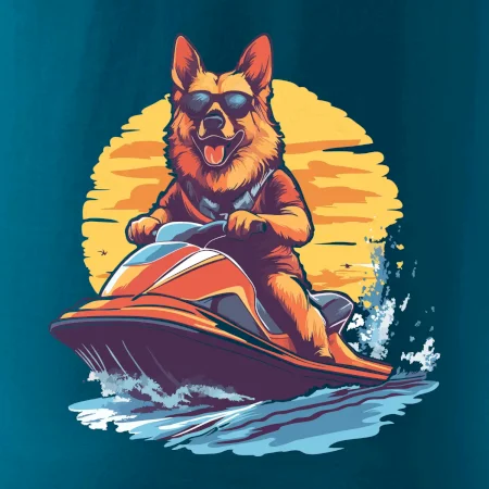 Nemecký ovčiak na vodnom skútri