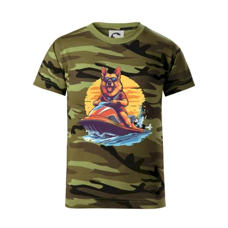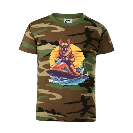 Nemecký ovčiak na vodnom skútri