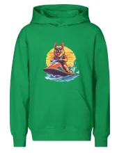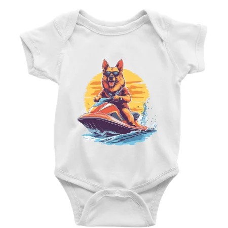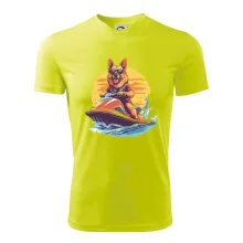 Nemecký ovčiak na vodnom skútri