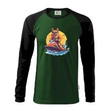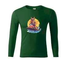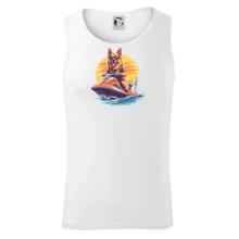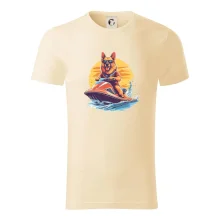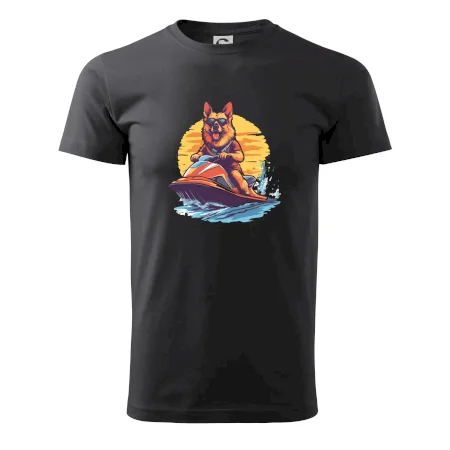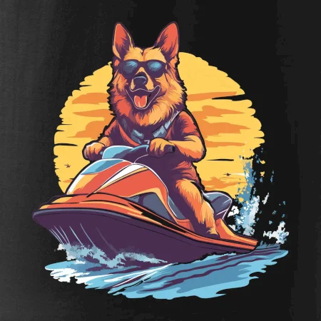 Nemecký ovčiak na vodnom skútri