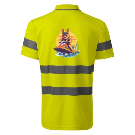 Nemecký ovčiak na vodnom skútri